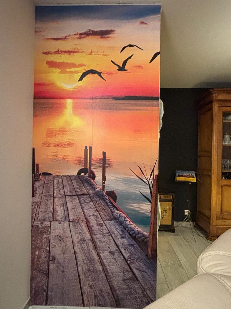 Papier peint photo de très haute qualité. Je l’ai posé aujourd’hui et j’ai été surpris par sa résistance. Il est très facile à coller, je le recommande sans réserve.