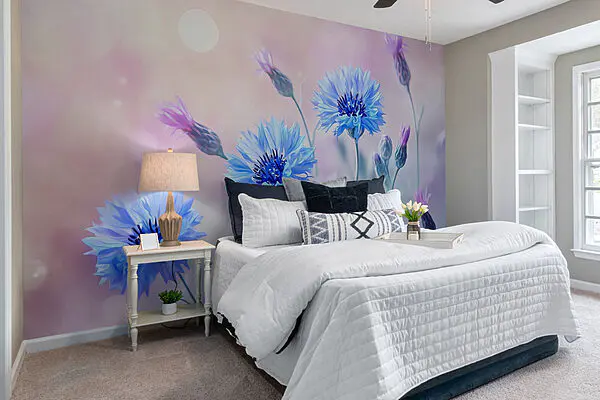 Papier peint Fleurs délicates dans des tons bleus doux