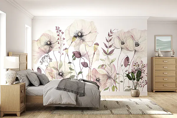Papier peint Des fleurs éthérées dans des teintes lumineuses