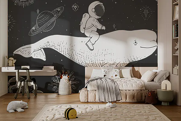 Papier peint Dessin d’une personne méditant au milieu d’un champ