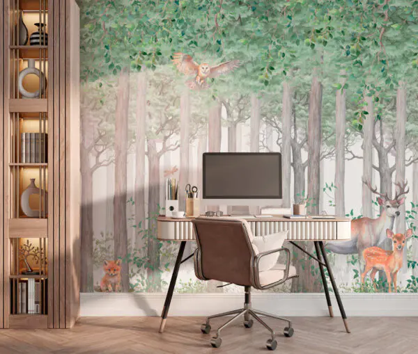 Papier peint Groupe d’arbres avec oiseaux en vol