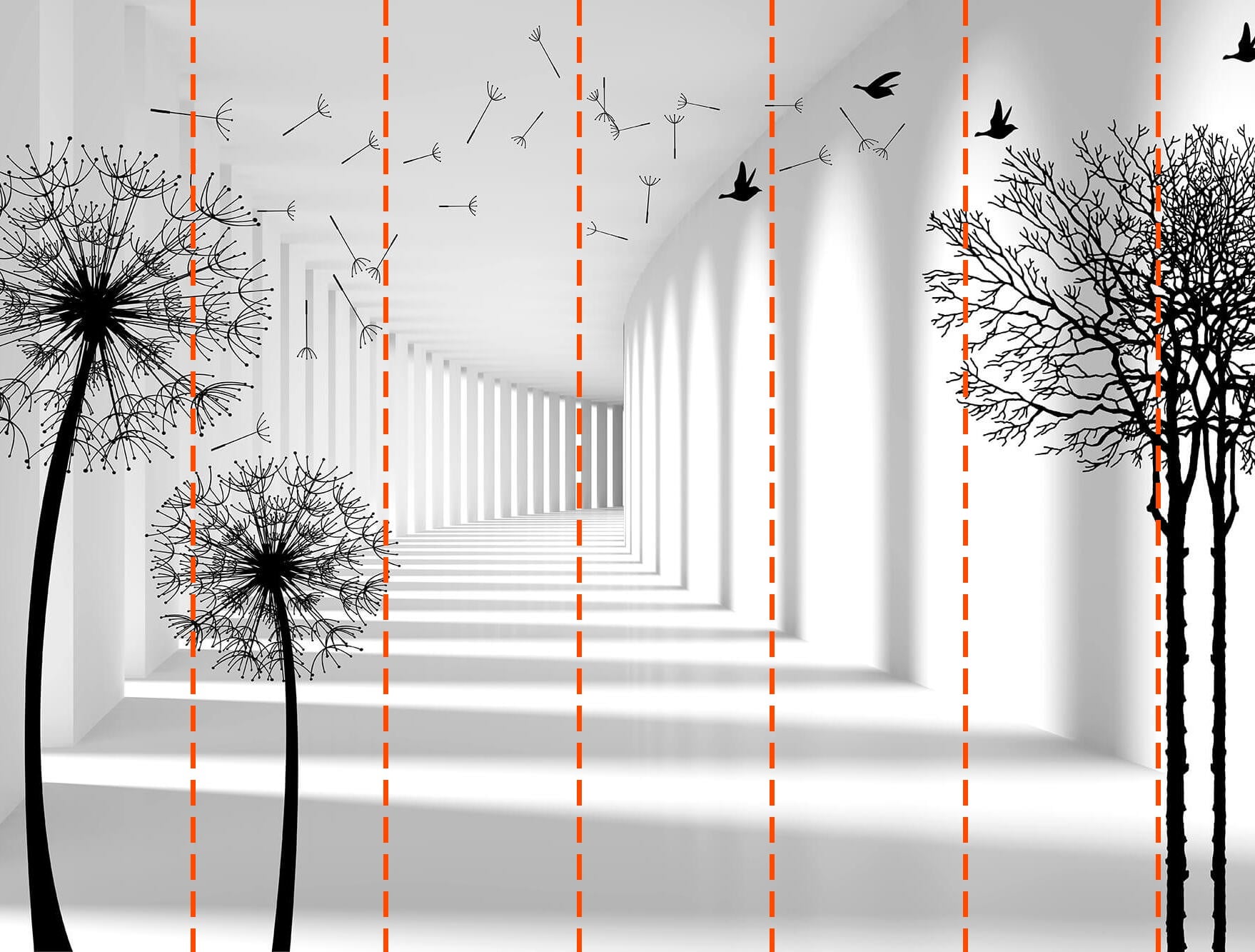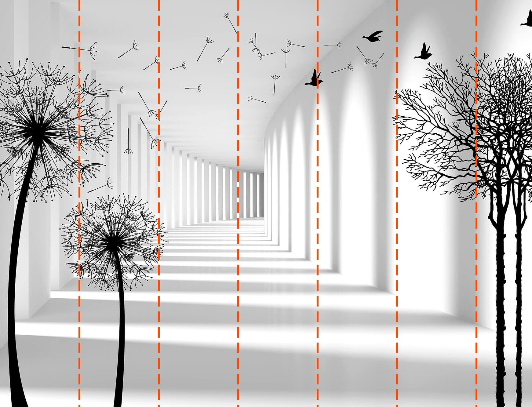 Papier peint Silhouette noire d'un pissenlit