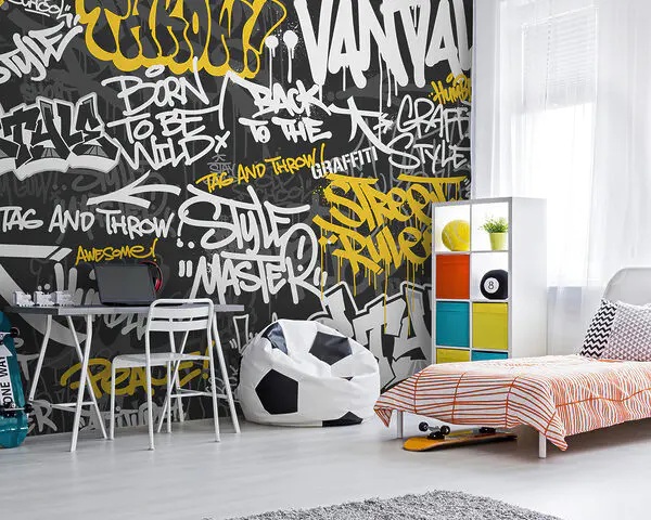 Papier peint Motifs abstraits sarcelle et beige tourbillonnants
