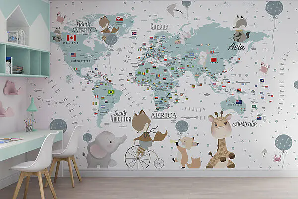 Papier peint Animaux pilotant des avions en papier de manière rêveuse