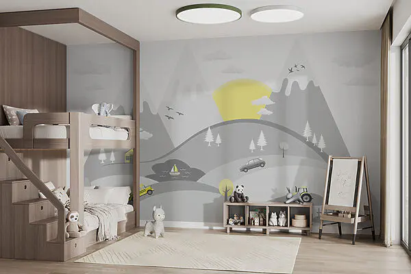 Papier peint Montagnes géométriques sous un ciel ensoleillé