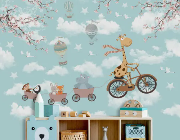 Papier peint Ourson conduisant une voiture avec des ballons