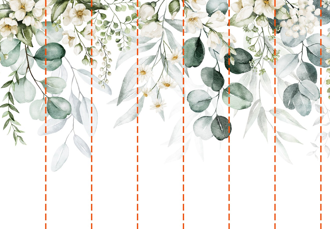 Papier peint Fleurs délicates avec des feuilles vertes douces