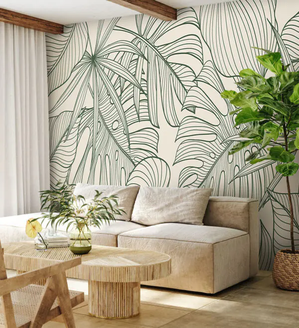 Papier peint Fleurs délicates avec des feuilles vertes douces