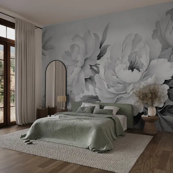 Papier peint Des fleurs élégantes dans un contraste monochrome