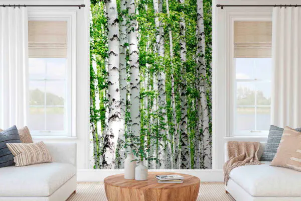 Papier peint Groupe d’arbres blancs avec des feuilles jaunes