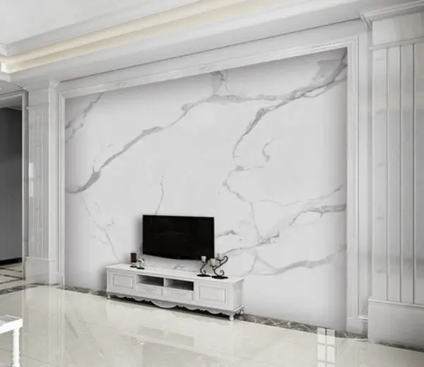 Papier peint Motif ondulé de marbre beige et blanc