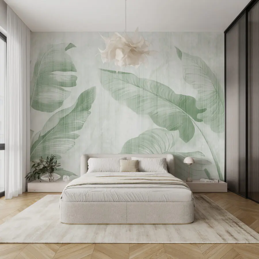 Transformez n’importe quelle pièce en oasis de sérénité grâce à cette peinture murale captivante de feuilles vertes luxuriantes sur un fond subtilement charmant. Imaginez que vous entrez dans une retraite tropicale directement chez vous, sans passeport. Parfait pour ajouter une touche de fraîcheur à votre espace de vie, il donne l’impression que la nature s’y infiltre. Qu’il s’agisse d’un coin lecture confortable ou d’un mur audacieux, ce motif apporte un sentiment de paix et de calme. Vos amis vous demanderont peut-être même si vous avez un jardin secret. C’est un excellent moyen d’engager la conversation ! De plus, qui n’aime pas se réveiller chaque jour avec un peu de magie feuillue ?