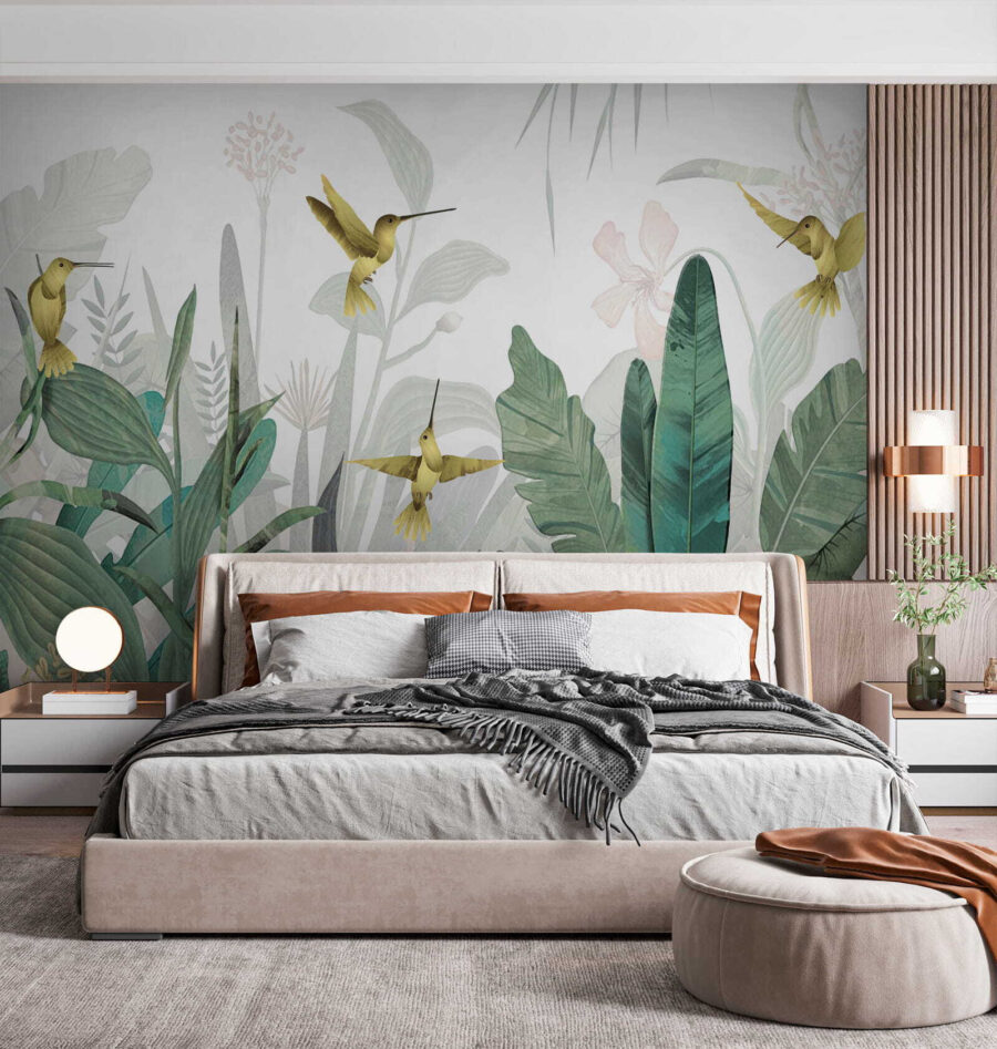 1 avis pour Papier peint Les colibris volent au milieu d’un feuillage luxuriant