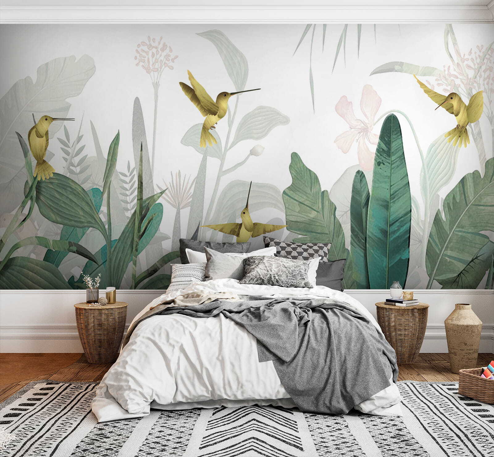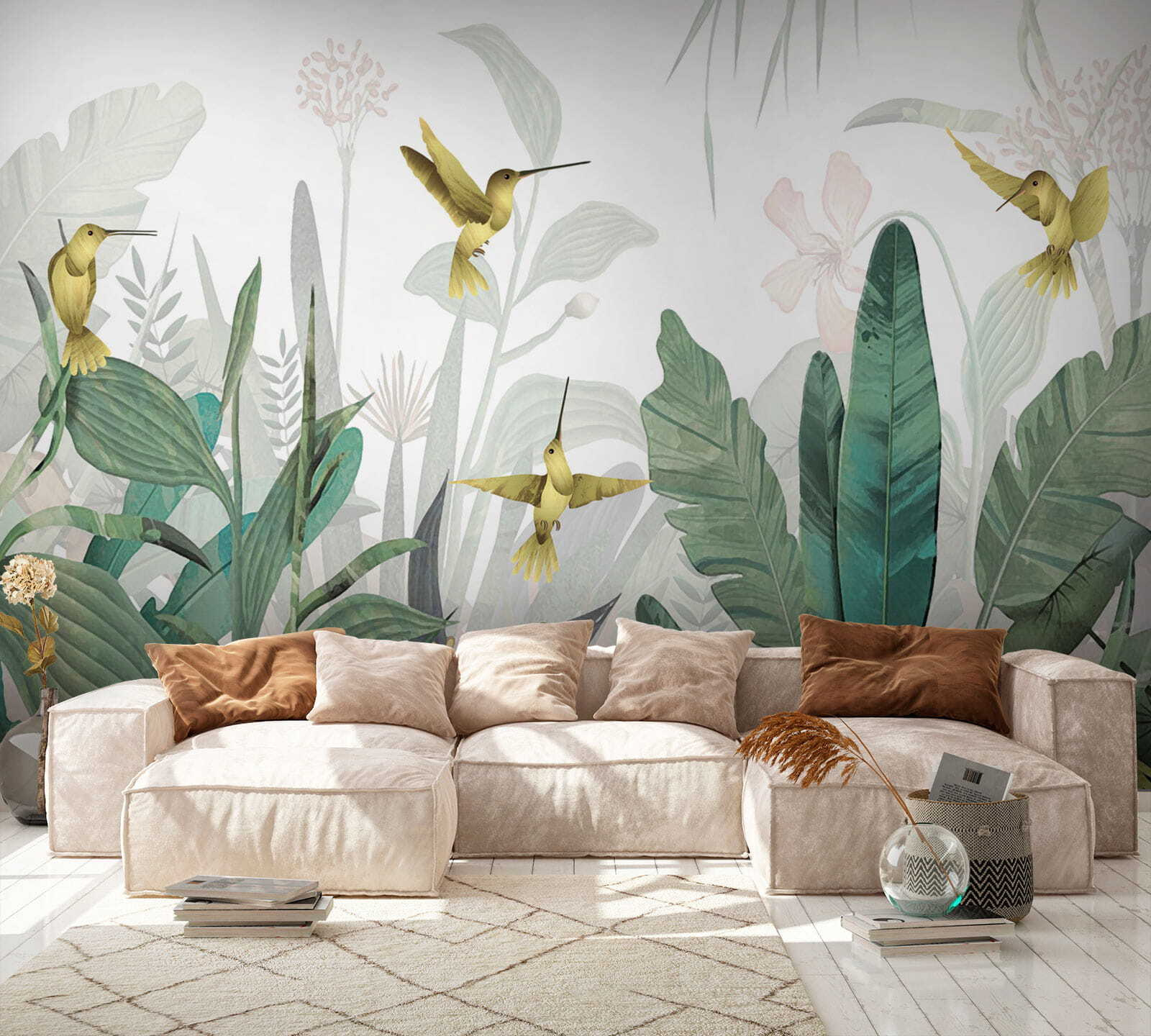 Qu’il s’agisse d’égayer un salon terne ou d’ajouter du charme à une chambre à coucher confortable, cette peinture murale a ce facteur “wow”. De plus, qui peut résister à ces adorables colibris ? On dirait qu’ils sont prêts à s’élancer hors du feuillage. Installez-la, détendez-vous et laissez votre esprit vagabonder vers de lointaines forêts tropicales. C’est plus qu’une simple peinture murale, c’est une mini-vacance à la maison.