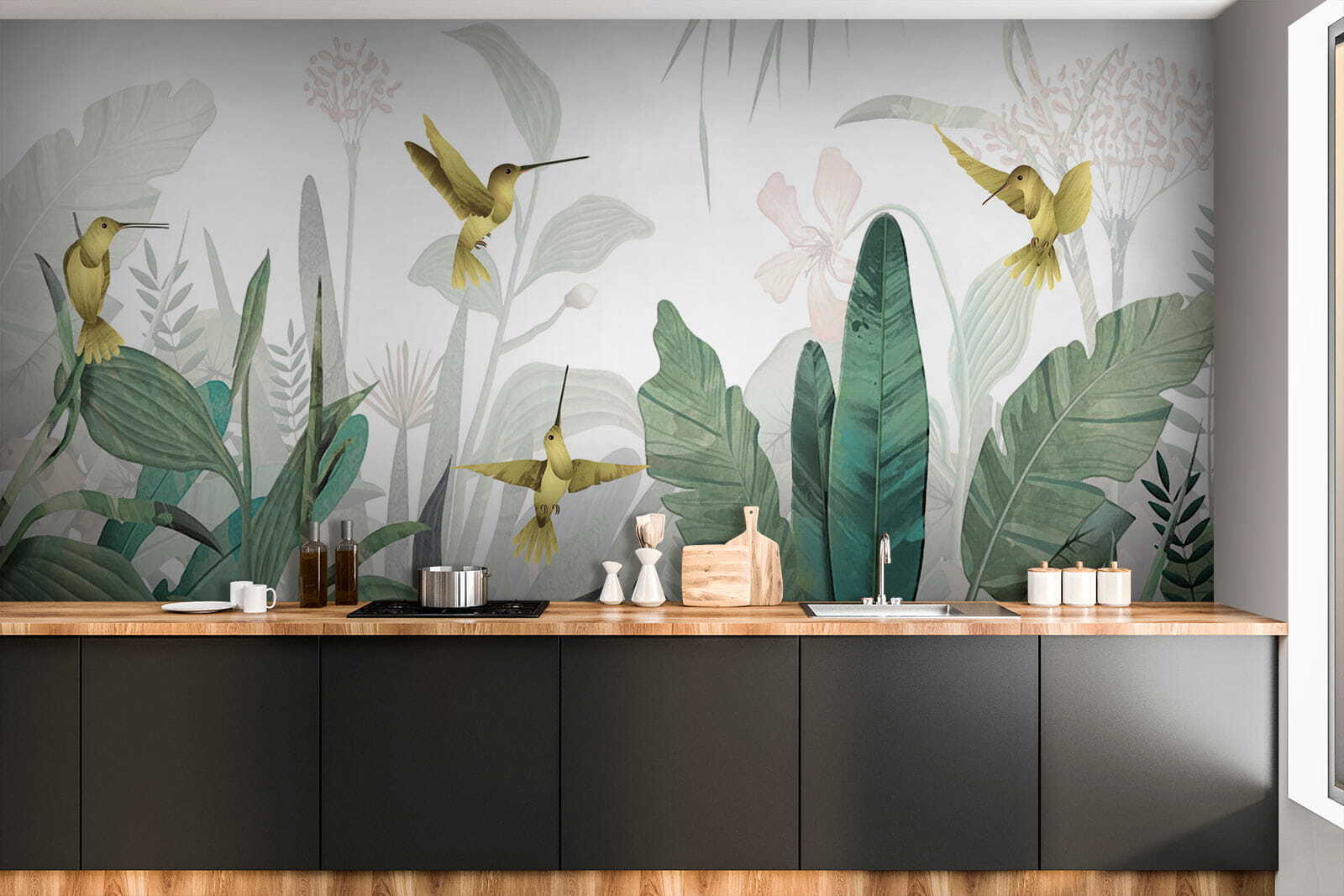1 avis pour Papier peint Les colibris volent au milieu d’un feuillage luxuriant