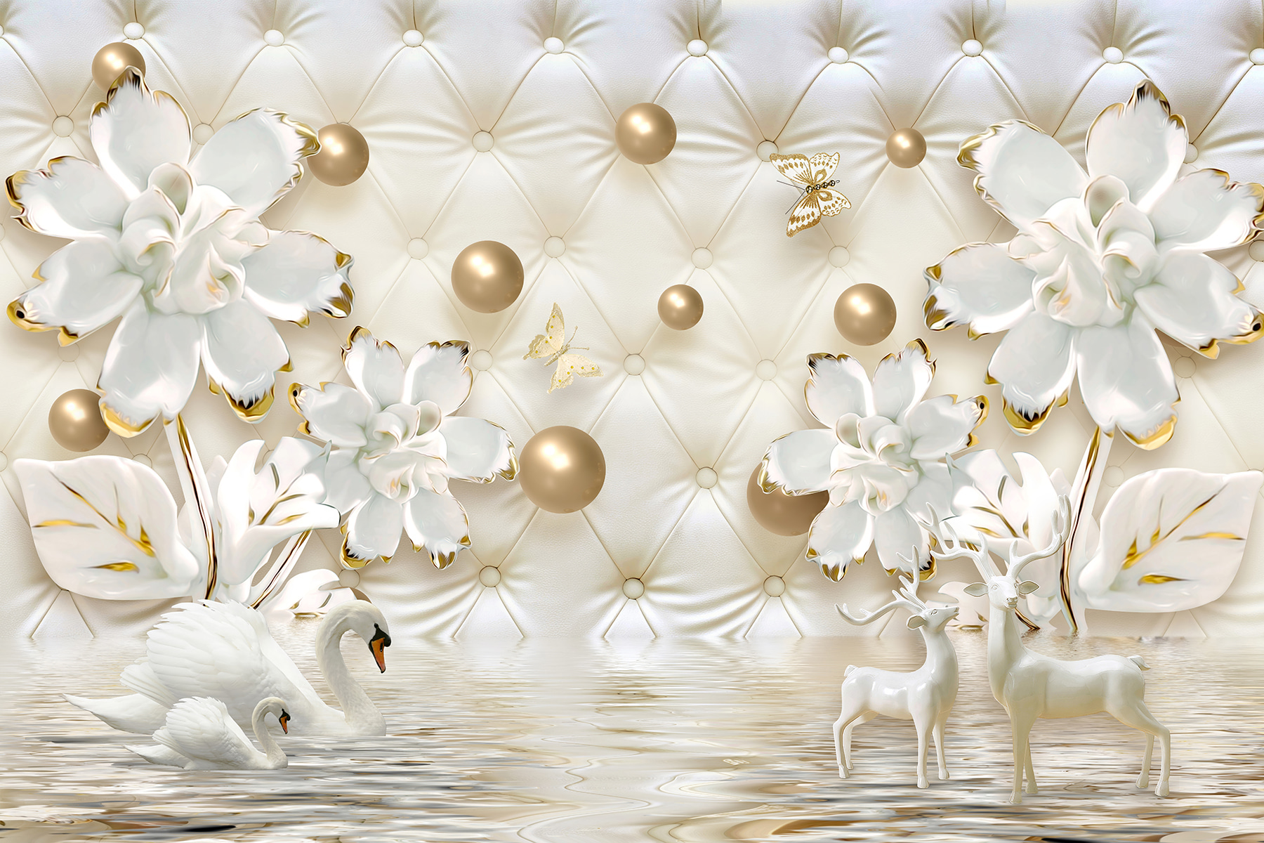 Transformez n’importe quel espace avec cette peinture murale enchanteresse représentant une statue blanche de cerf dans un décor de rêve. Imaginez que vous entrez dans une pièce où l’élégance rencontre le charme de la nature – ces fleurs luxuriantes et ces couples de cygnes lui confèrent un caractère spécial. C’est comme une évasion sereine dans votre maison. Parfait pour un salon ou même un coin lecture confortable, il invite aux compliments et aux conversations curieuses. Imaginez quelqu’un qui l’admire en sirotant un café et qui sent le calme l’envahir. Une touche de fantaisie qui réchauffe le cœur et illumine l’atmosphère – il est certain qu’il deviendra l’un des endroits préférés de toute maison.