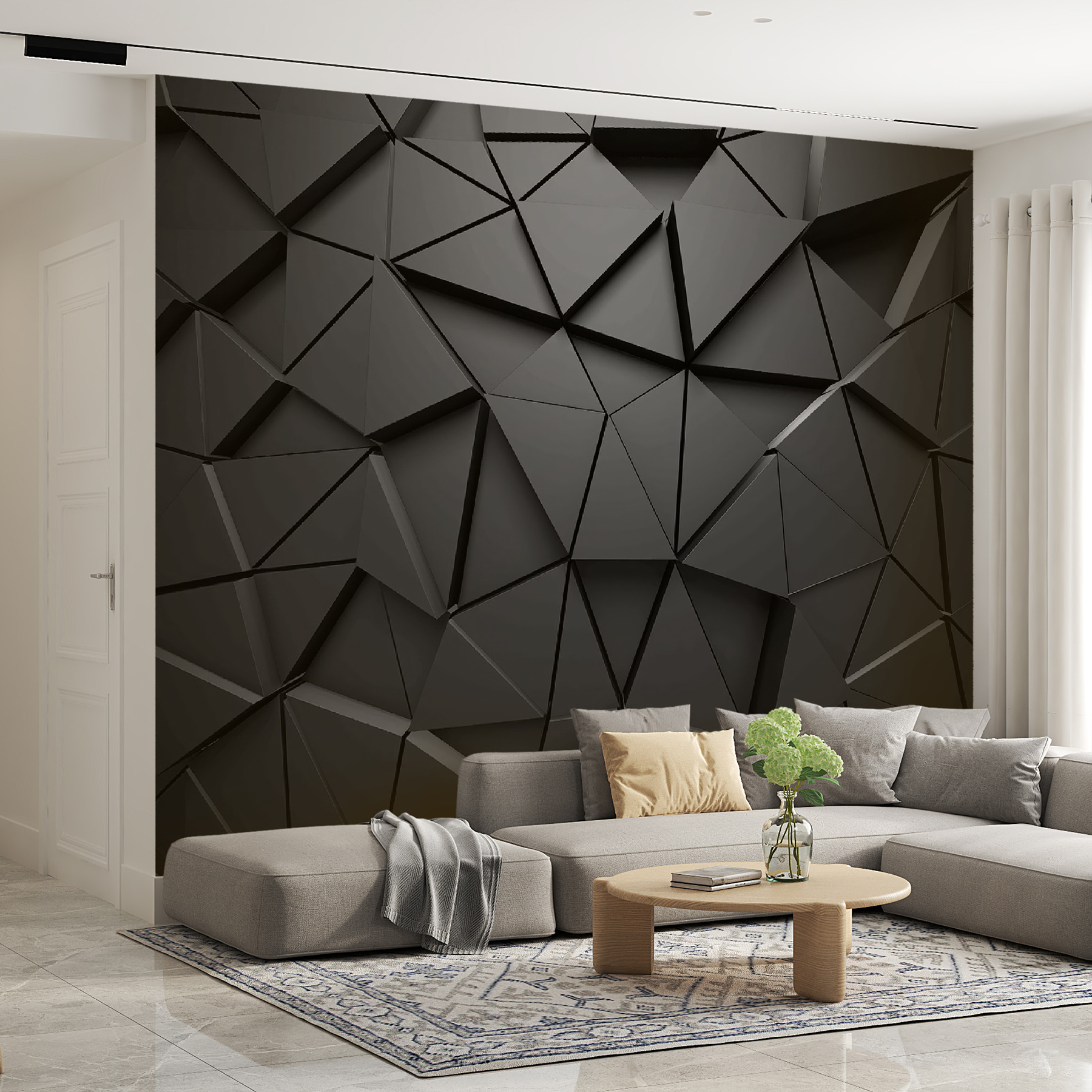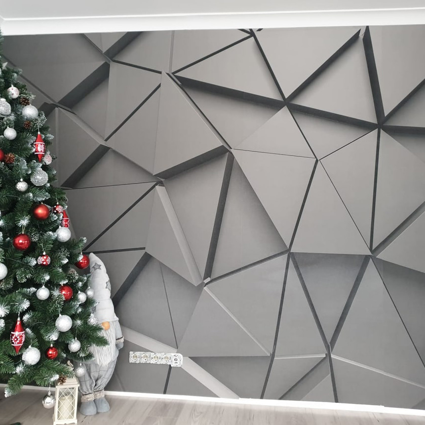 Transformer un espace devient beaucoup plus cool avec ce motif abstrait géométrique monochrome. Imaginez : un mur qui n’est plus une toile de fond, mais une œuvre d’art qui demande à être discutée. Les triangles qui se chevauchent créent une ambiance 3D cool qui donne l’impression d’entrer dans une galerie d’art moderne sans sortir de chez soi. Ils donnent une impression de profondeur et de drame, parfaite pour ceux qui apprécient les lignes épurées et les déclarations audacieuses. La lumière qui rebondit sur ces angles stimule l’imagination. Que ce soit dans un salon confortable ou dans un bureau branché, il ne manquera pas de susciter des conversations et peut-être un peu d’envie de la part d’amis en visite. Imaginez l’un d’entre eux dire : “J’ai besoin de ça dans ma vie !”. Qui n’en aurait pas besoin ? Optez pour l’audace et laissez vos murs parler.
