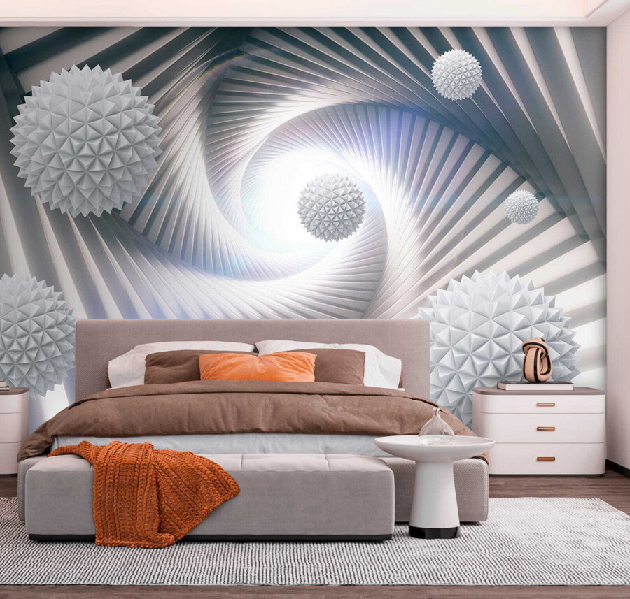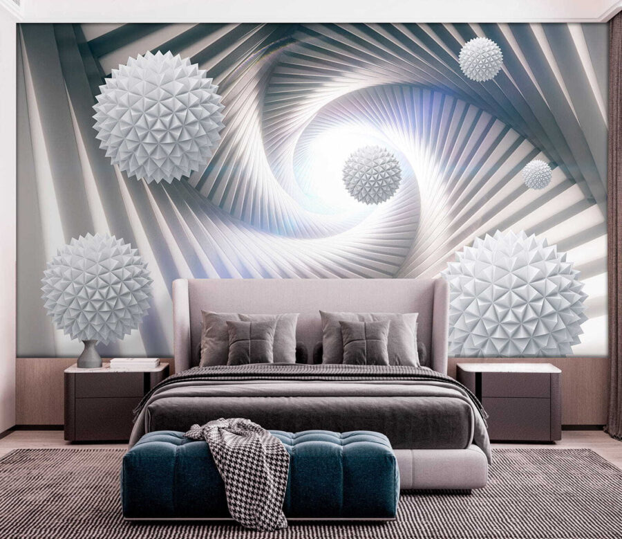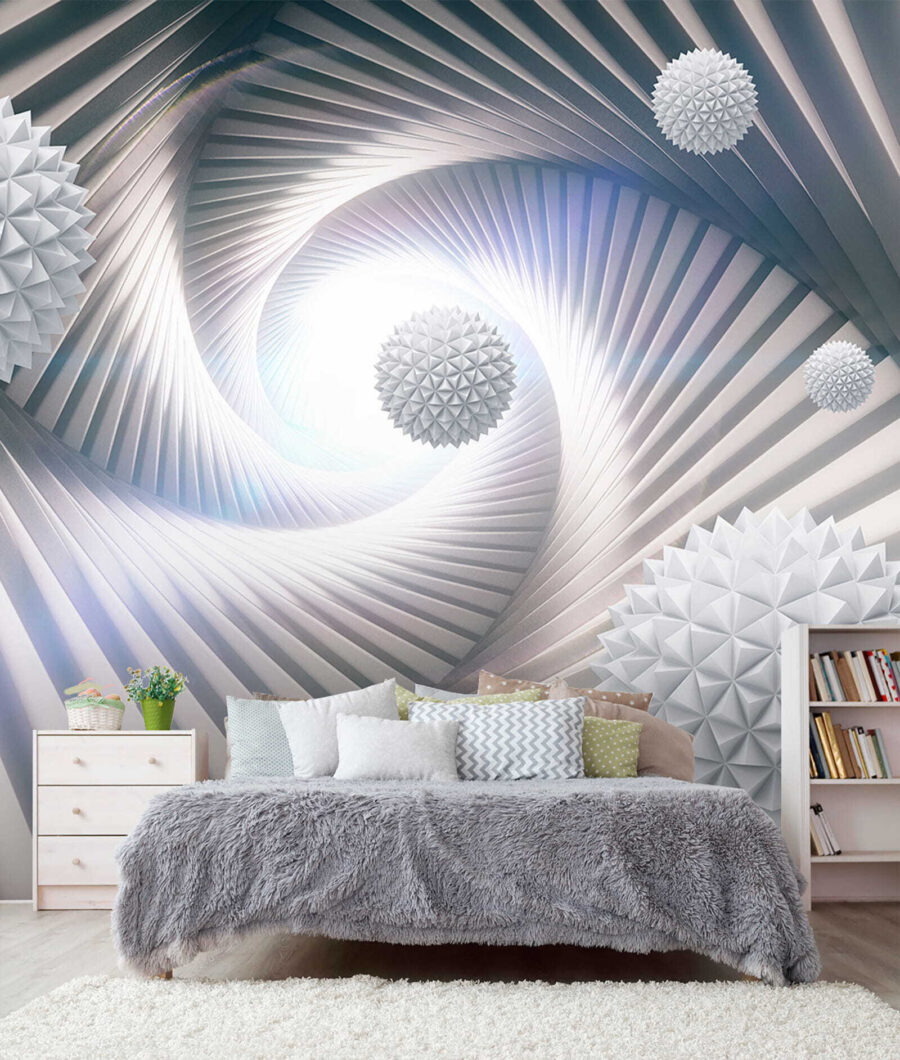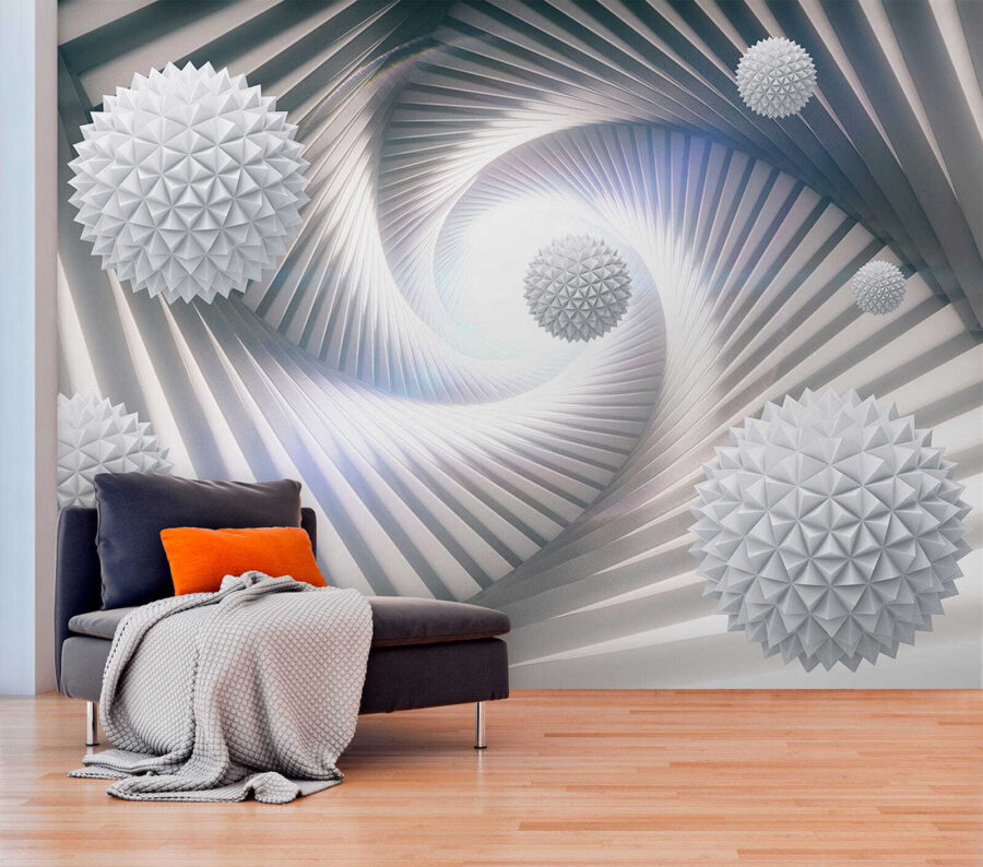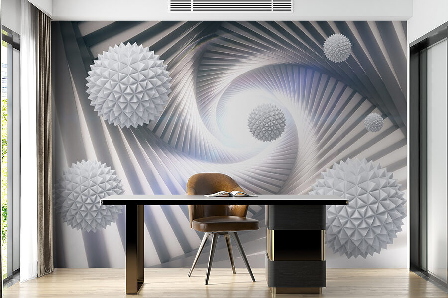 Transformez votre espace avec cette peinture murale accrocheuse, “Muraux Sphère blanche avec triangles”. C’est comme si vous entriez dans un pays de rêve géométrique. Imaginez : vous entrez dans une pièce et, boum, ces formes ludiques et complexes se détachent du mur. Il ne s’agit pas seulement d’un décor, mais d’une ambiance, d’une chaleur à la fois calme et curieuse.