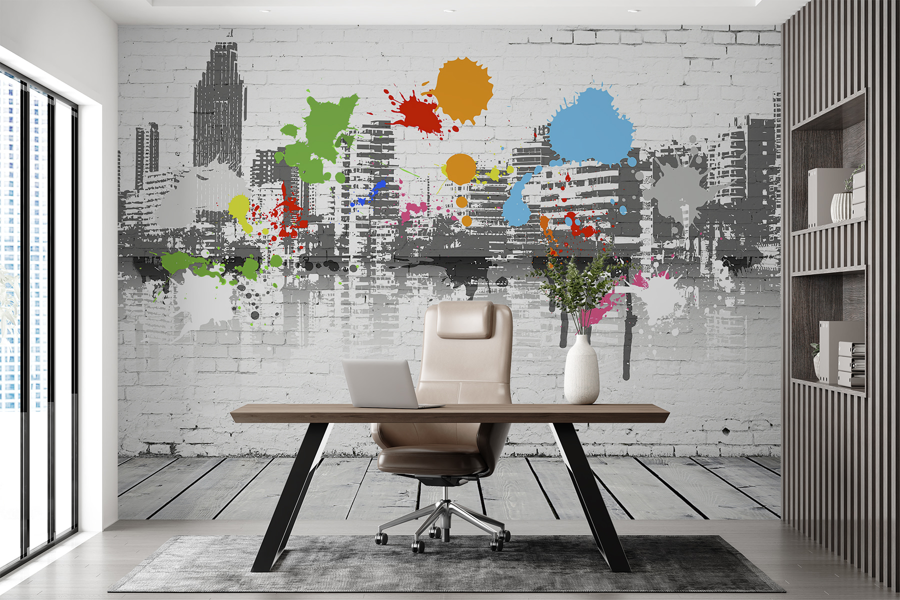 Cette peinture murale change complètement la donne dans n’importe quel espace ! Elle s’intitule “Tache bleue sur un mur de briques blanches”, mais elle fait bien plus qu’ajouter une touche de couleur. Imaginez que vous vous réveillez tous les jours devant ce tableau : des éclats de bleu, de vert et d’autres couleurs vives sur la silhouette froide d’un paysage urbain. C’est comme si vous donniez à votre chambre une bouffée d’énergie créative sans le moindre désordre !