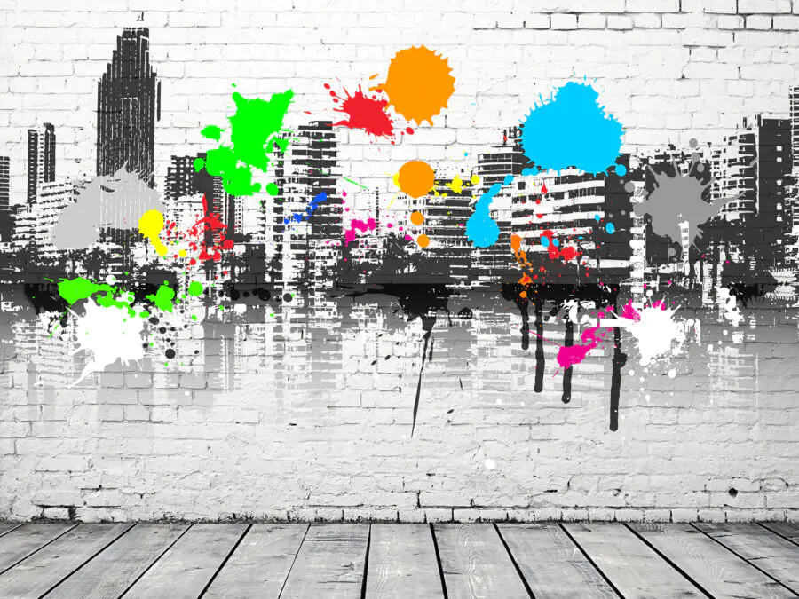 Cette peinture murale change complètement la donne dans n’importe quel espace ! Elle s’intitule “Tache bleue sur un mur de briques blanches”, mais elle fait bien plus qu’ajouter une touche de couleur. Imaginez que vous vous réveillez tous les jours devant ce tableau : des éclats de bleu, de vert et d’autres couleurs vives sur la silhouette froide d’un paysage urbain. C’est comme si vous donniez à votre chambre une bouffée d’énergie créative sans le moindre désordre !
