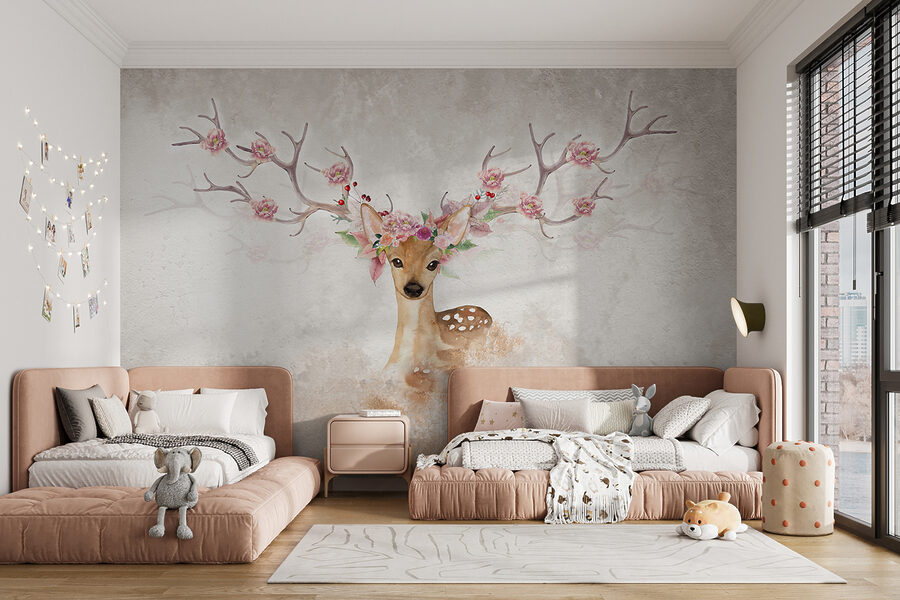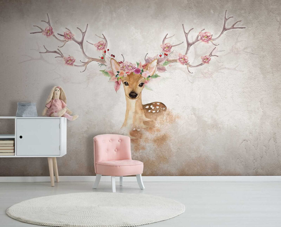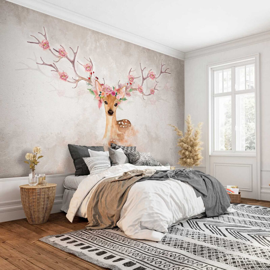 3 avis pour Papier peint Aquarelle d’un cerf avec des fleurs sur la tête