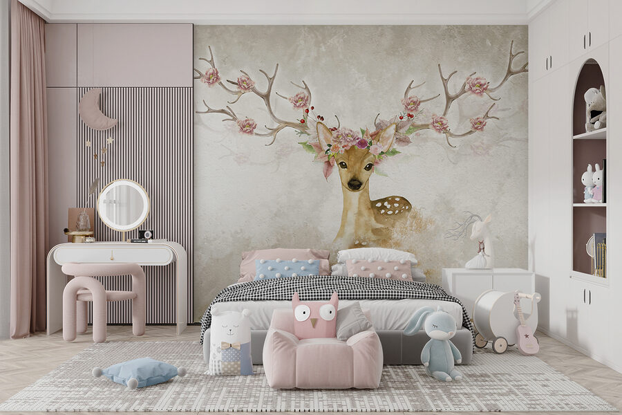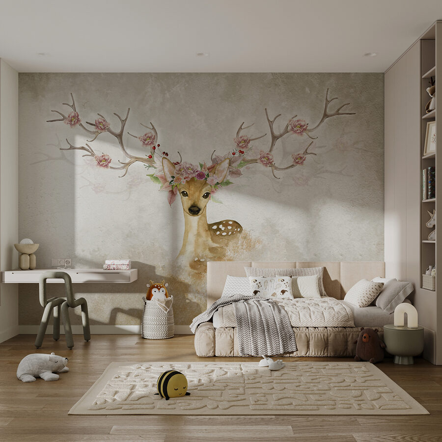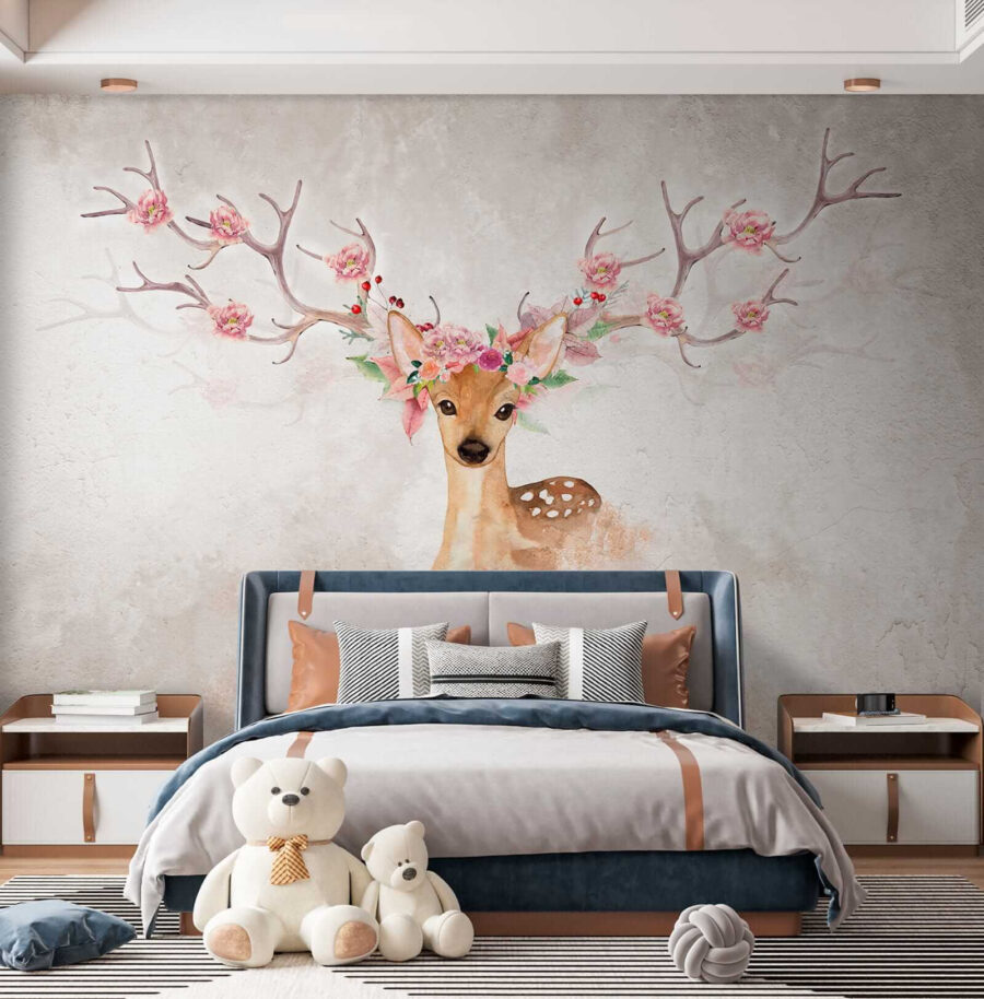 Imaginez que vous entrez dans une pièce et que vous êtes accueilli par cette aquarelle murale enchanteresse représentant un cerf avec des fleurs sur la tête. N’est-ce pas adorable ? Parfait pour une chambre d’enfant ou un endroit douillet qui ne demande qu’à être agrémenté d’une touche de fantaisie ! Il y a ce merveilleux mélange de tons terreux et de pastels délicats qui donne l’impression d’être… magique. Imaginez votre enfant en train de rêver sous l’œil attentif de cette douce créature. Ou bien, égayez votre espace quotidien avec cette œuvre d’art douce et charmante, qui garantira le sourire de vos invités ! De plus, ces fleurs sur les bois sont trop jolies, vous ne trouvez pas ? C’est comme un conte de fées qui prendrait vie sur votre mur. Respirez la créativité et laissez couler ces ondes de rêve…