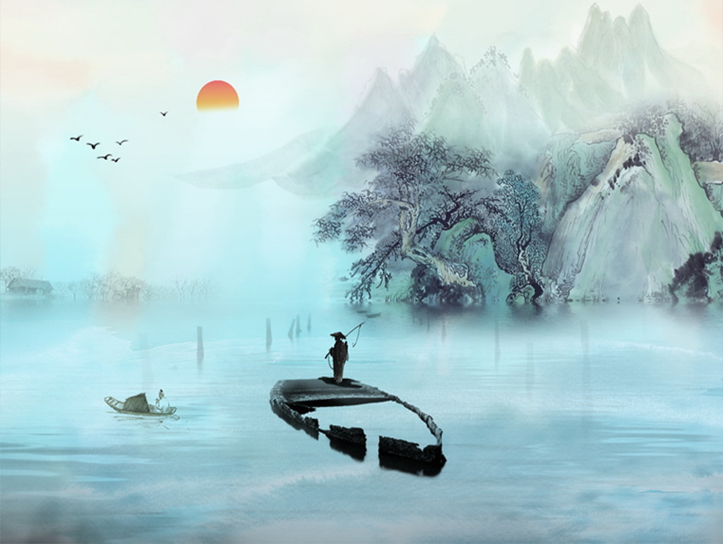 Imagine walking into a room where the first thing that catches your eye is this stunning mural. A serene man stands on a boat, surrounded by soft water colors and majestic mountains. It’s like stepping into a watercolor painting, but without the risk of getting paint on your hands. The gentle hues are so calming, they might just inspire a little daydreaming about peaceful lake afternoons. Picture a cozy reading nook right under this mural—how perfect would that be? It’s almost like the mural whispers, “Take a breather, you deserve it.” Perfect for lovers of nature and art, it brings a refreshing calmness to any space.
