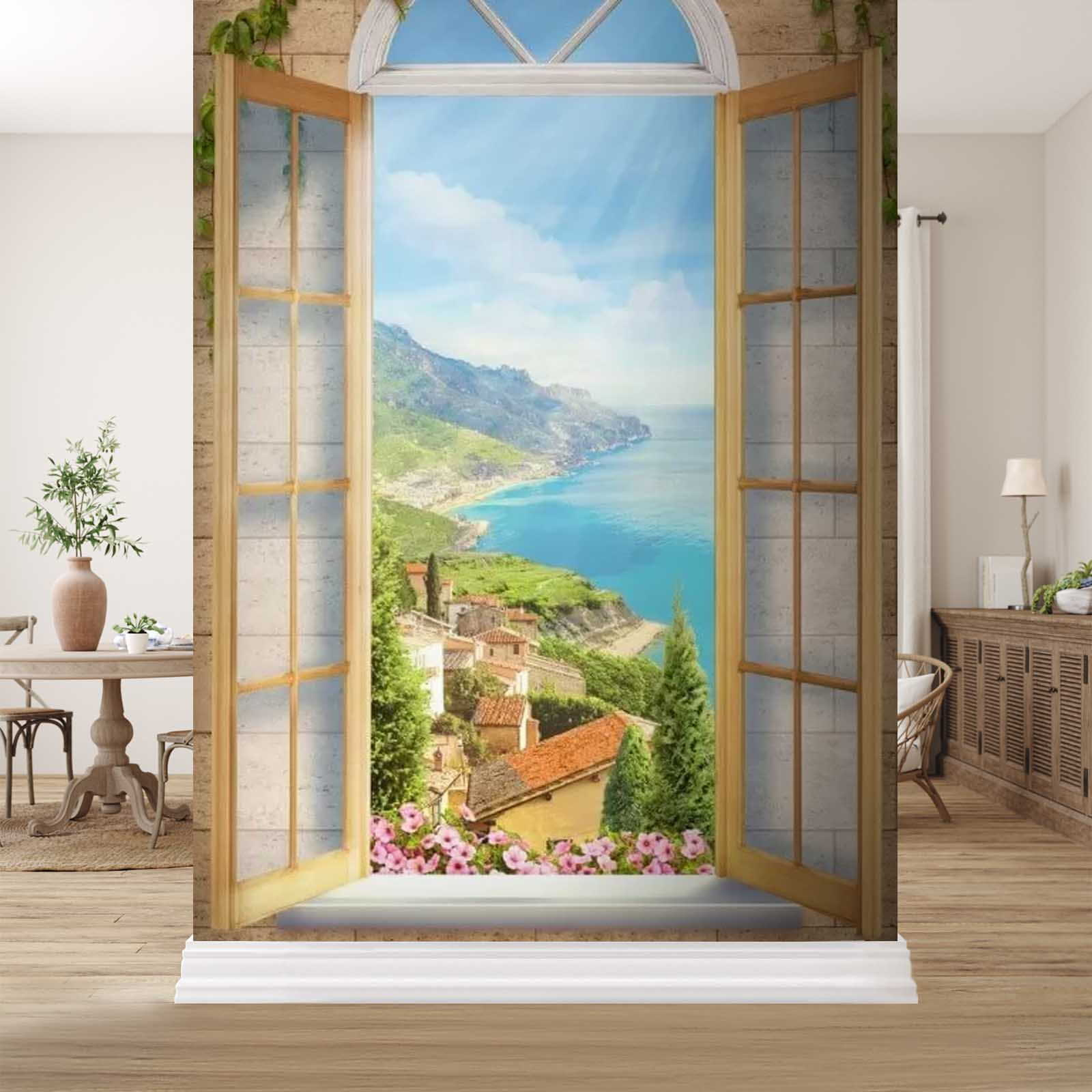1 avis pour Papier peint Vue du bord de mer depuis une fenêtre ouverte