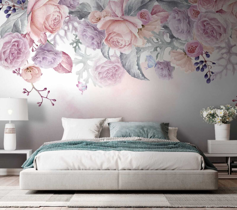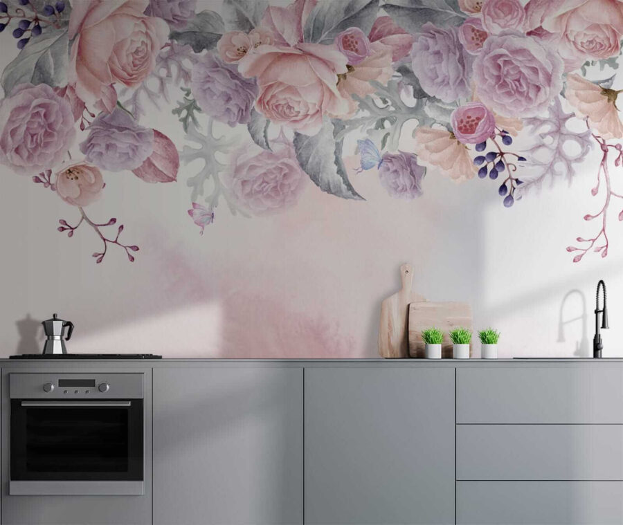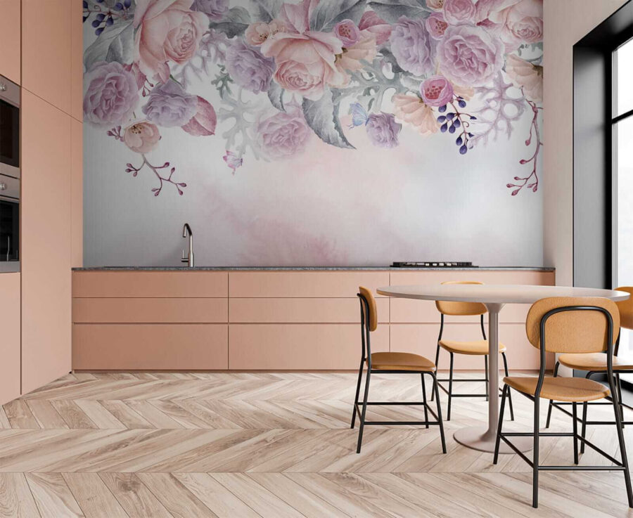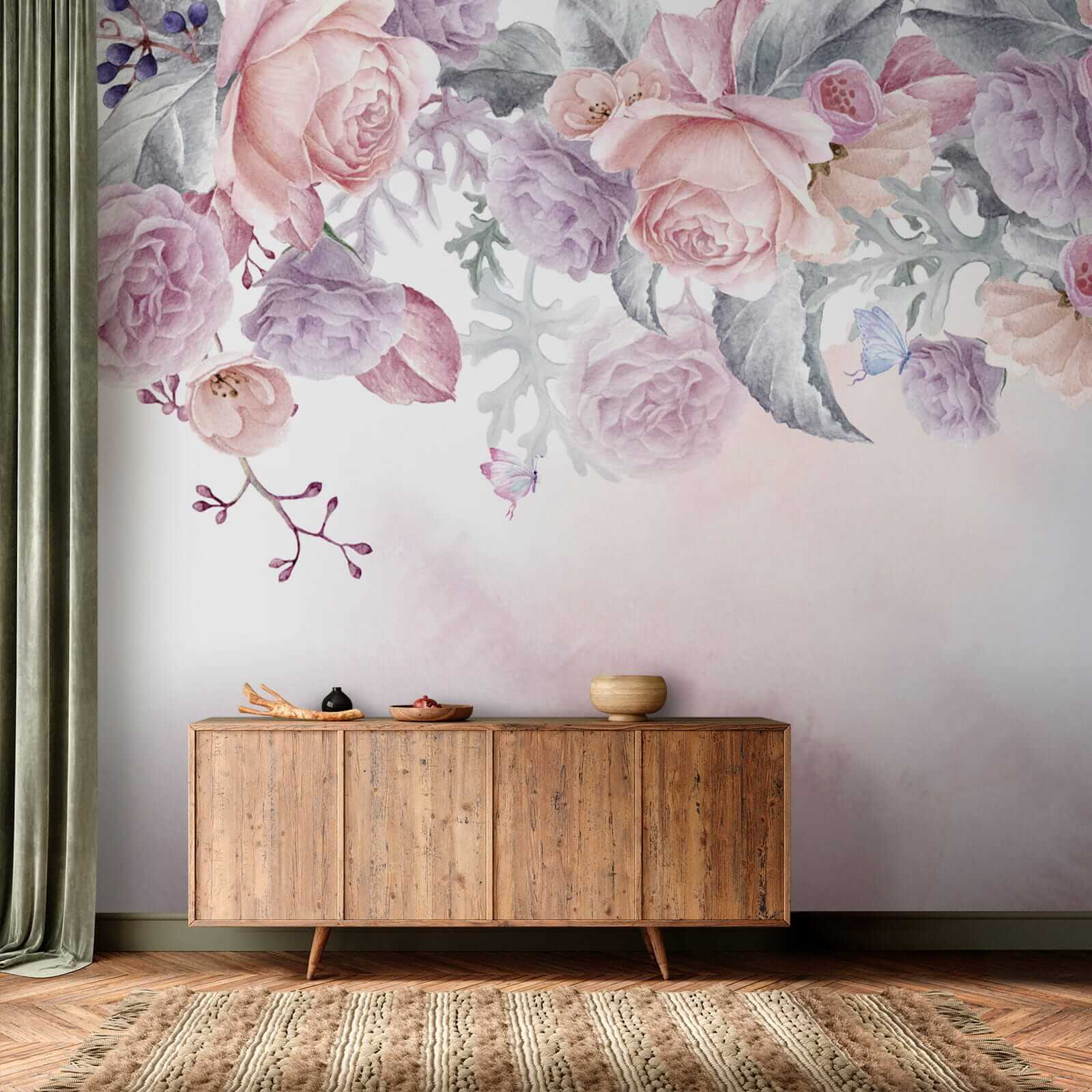 1 avis pour Papier peint Des fleurs blush avec des papillons délicats