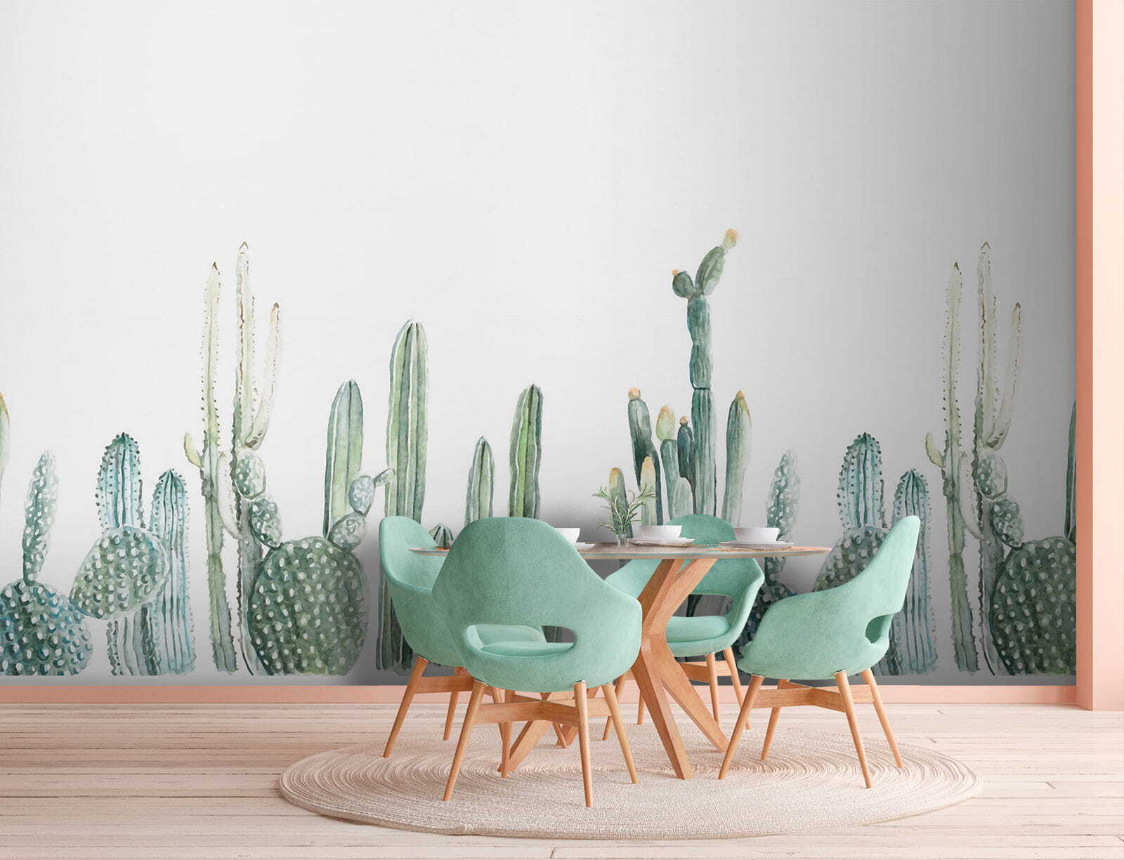 Transformez n’importe quelle pièce en oasis désertique grâce à cette ravissante peinture murale représentant des cactus aquarellés en rangées charmantes. Imaginez : vous entrez dans votre espace et vous avez soudain l’impression de vous promener dans un jardin serein, sans avoir besoin de crème solaire. Les verts doux et les formes ludiques apportent un sentiment de calme, ce qui est parfait pour un coin lecture confortable ou un salon animé. C’est un peu comme si vous aviez un cactus pour animal de compagnie, sans avoir à l’entretenir. Cette fresque murmure la chaleur et la tranquillité, invitant tous ceux qui entrent à se détendre et à se relaxer. Alors n’hésitez plus, laissez vos murs respirer la vie !