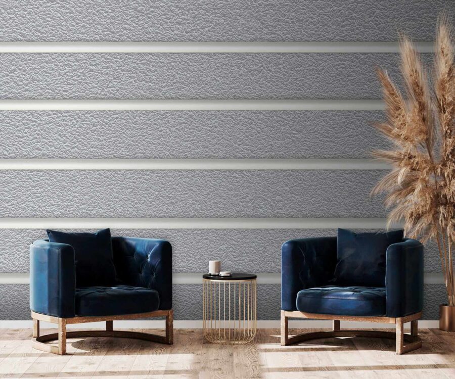 Le revêtement vinylique est une fine couche de PVC appliquée sur un support intissé. La présence de vinyle rend le papier peint résistant aux dommages, permet un nettoyage facile à l’aide d’une éponge humide et donne à la surface une texture gaufrée, ressemblant à un tissu de lin.