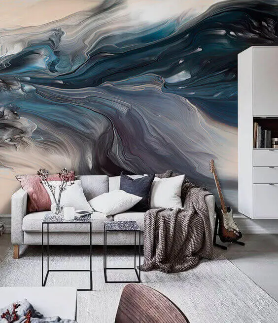 Transform your space with the “Flowing Waves of Color and Texture” mural—it’s like a cozy hug for your walls! This stunning piece dances in blues, blacks, and soft creams, creating a sense of calm that wraps around you. Imagine sipping your coffee, lost in the waves, as they invite you to daydream about ocean adventures or lazy afternoons by the shore. It’s versatile enough to complement any room, from a chic living area to a tranquil bedroom. Plus, who doesn’t love a little extra pizazz that sparks conversation? Just think—friends will wonder if you’ve become a secret art collector!