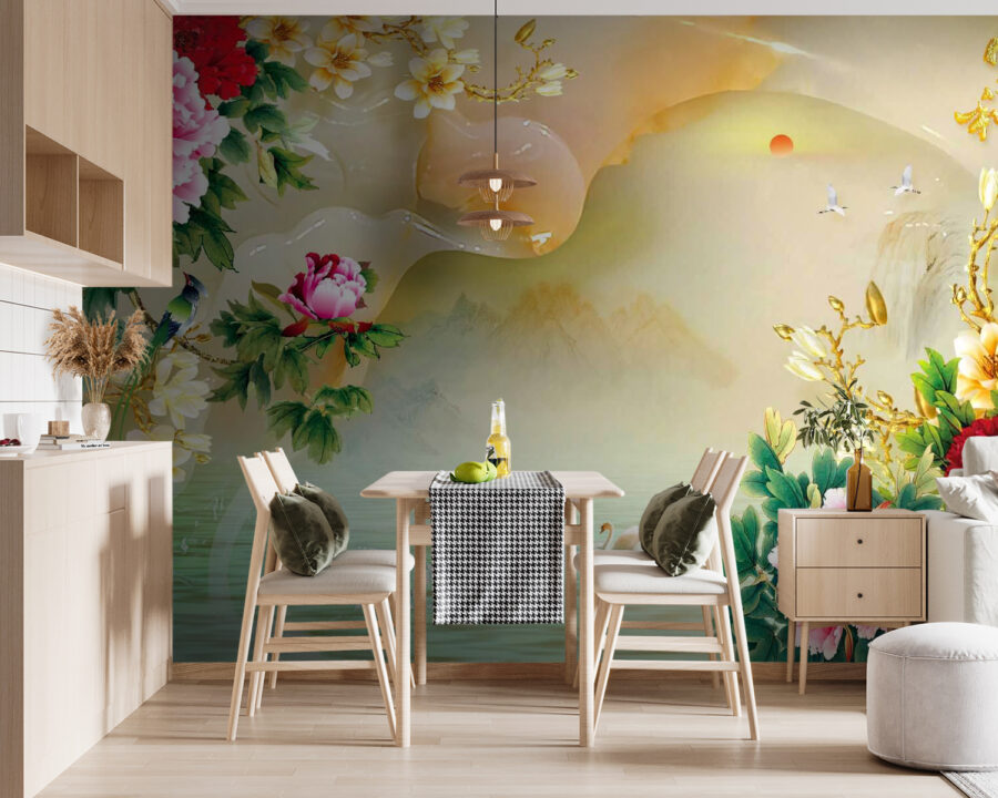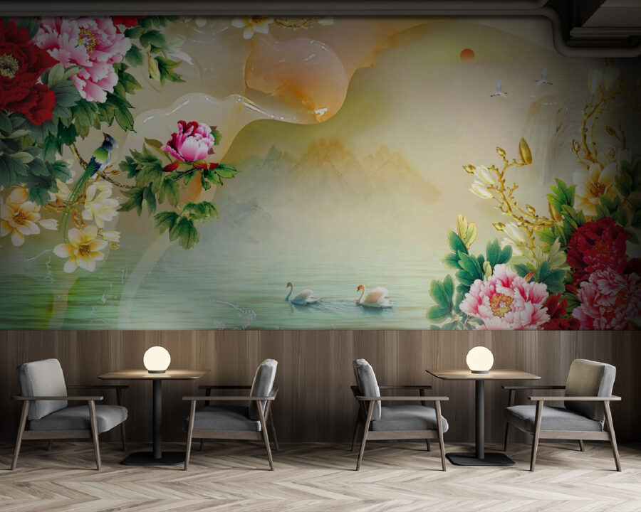 Transformez n’importe quel espace en une oasis de tranquillité grâce à cette ravissante fresque murale représentant des fleurs éclatantes et des cygnes gracieux. Les pivoines éclatent de couleurs, créant une atmosphère vivante, tandis que les cygnes sereins glissent sur une surface d’eau onirique, invitant à un après-midi de détente. Imaginez-vous en train de siroter un thé ici, avec l’impression d’être entré dans une aquarelle. Cette pièce est parfaite pour les murs d’accent ou les coins confortables, mélangeant sans effort la beauté de la nature avec votre décoration. Ce n’est pas seulement de l’art, c’est une invitation à faire une pause, à respirer et à profiter un peu plus de la vie.