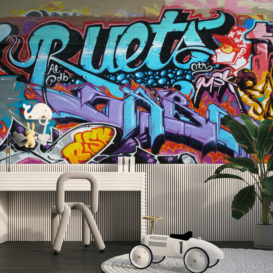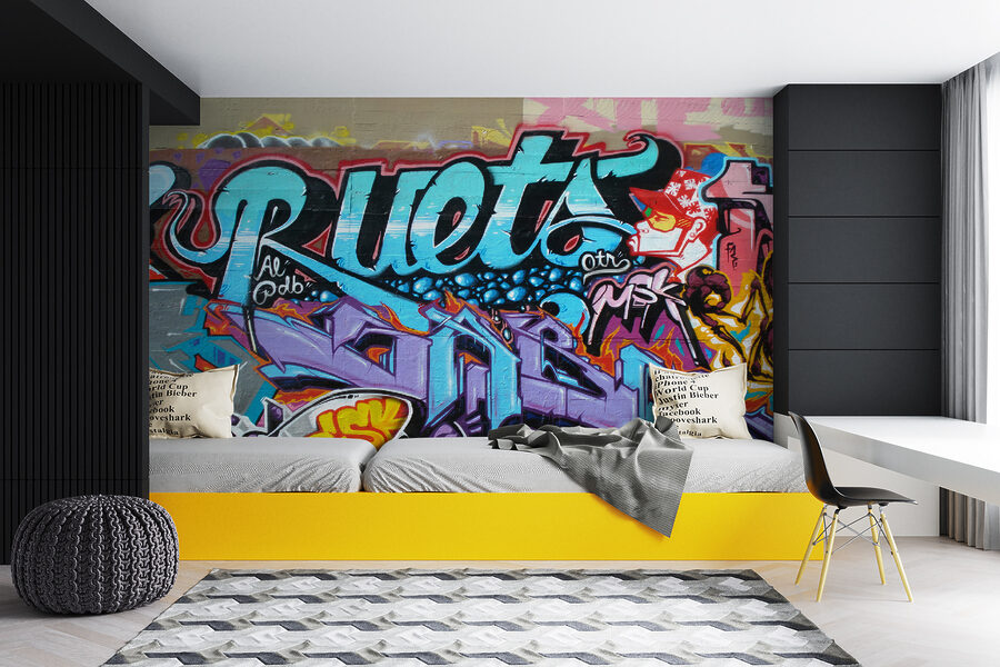 Parfaite pour les adolescents ou les jeunes adultes qui veulent un peu d’ambiance urbaine dans leur espace, cette peinture murale crie la personnalité sans dire un mot. Ses couleurs vives et ses motifs complexes vous donnent l’impression de vous promener dans une ruelle artistique d’une ville animée.