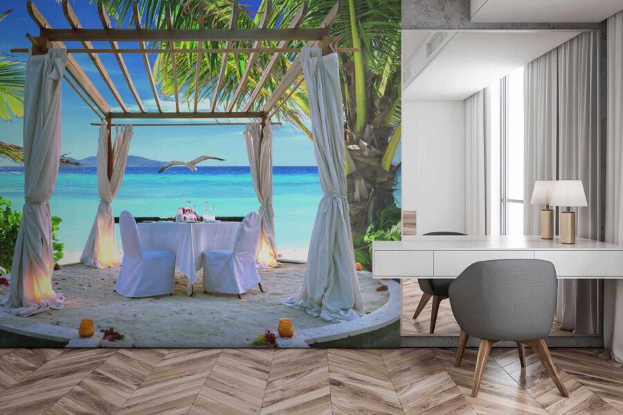 Imaginez-vous dans un petit coin de paradis sans même quitter votre maison. Cette fresque murale pleine de vie, « Table dressée sur la plage », vous invite à vous détendre dans votre salon en rêvant de sable entre vos orteils et de la brise marine. Imaginez un dîner romantique sous les palmiers qui se balancent, avec le bruit des vagues en fond sonore. Chaque fois que vous le regardez, c’est comme si vous partiez en mini-vacances ! Avec ses couleurs vives et son ambiance tropicale, ce papier peint donne vie à n’importe quel espace. Parfait pour les rêveurs et les amoureux de la plage, il offre un équilibre idéal entre détente et aventure. Apportez un peu de la magie de la plage dans votre intérieur, qui n’en rêverait pas ?