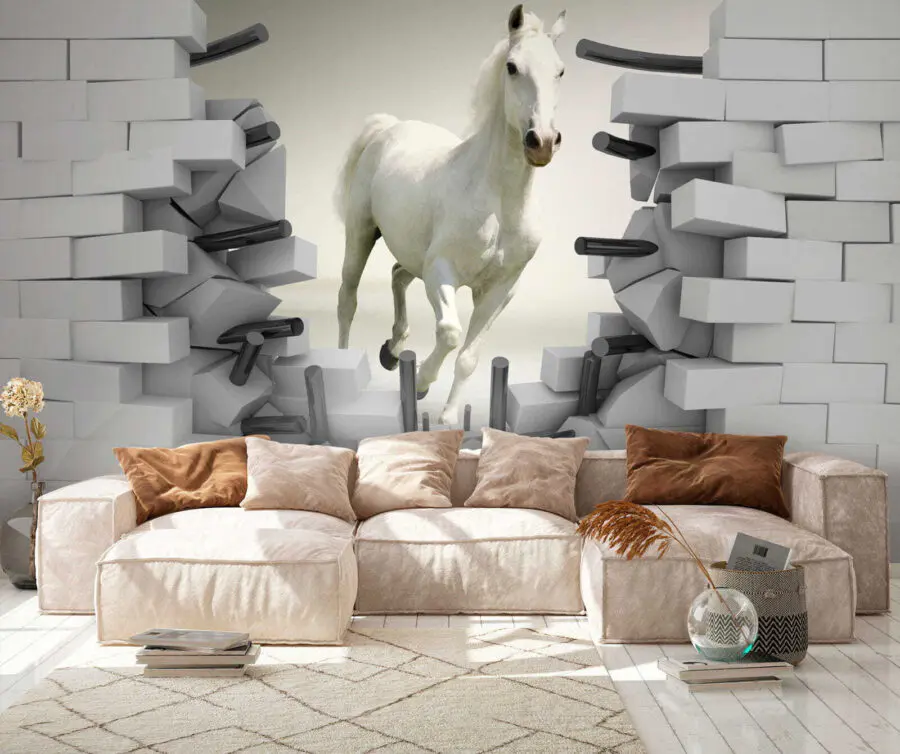 Imaginez que vous ayez l’impression qu’un étalon blanc galope littéralement dans votre chambre – à travers le mur ! C’est ce que vous obtenez avec cette superbe peinture murale. Grâce à son incroyable effet 3D, on a l’impression que le cheval est sur le point de bondir hors de l’œuvre d’art et d’entrer directement dans votre espace. Les enfants seront émerveillés et penseront qu’ils font partie d’une aventure magique. Quant aux adultes, ils ne manqueront pas d’engager la conversation ! Qu’il s’agisse d’une salle de jeux, d’un espace de vie funky ou même d’un bureau créatif, cette peinture murale apporte une bouffée d’énergie et une touche de fantaisie. Elle est enchanteresse, audacieuse et juste ce qu’il faut d’inattendu – vous ne pouvez tout simplement pas la regarder sans sourire !