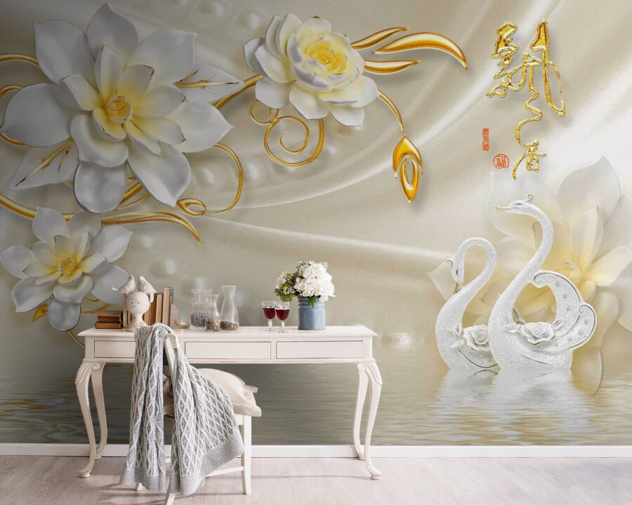 Transformez n’importe quelle pièce en une évasion sereine grâce à cette peinture murale enchanteresse représentant de jolis cygnes et des fleurs délicates. Imaginez que vous pénétrez dans un jardin tranquille où des cygnes glissent gracieusement sur un étang scintillant – ça fait rêver, non ? Ce motif ludique, parfait pour les chambres d’enfants ou les coins douillets, apporte une touche de nature à l’intérieur. Chaque coup d’œil à la peinture murale peut évoquer des sentiments de paix et de joie, ce qui en fait une toile de fond idéale pour jouer ou lire tranquillement. Avec des fleurs qui s’épanouissent magnifiquement, il est difficile de ne pas sourire ! Qui ne voudrait pas d’un peu de cette magie dans sa maison ?