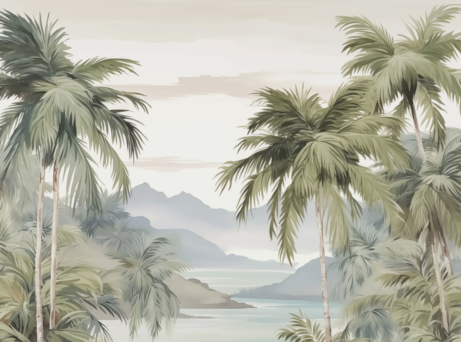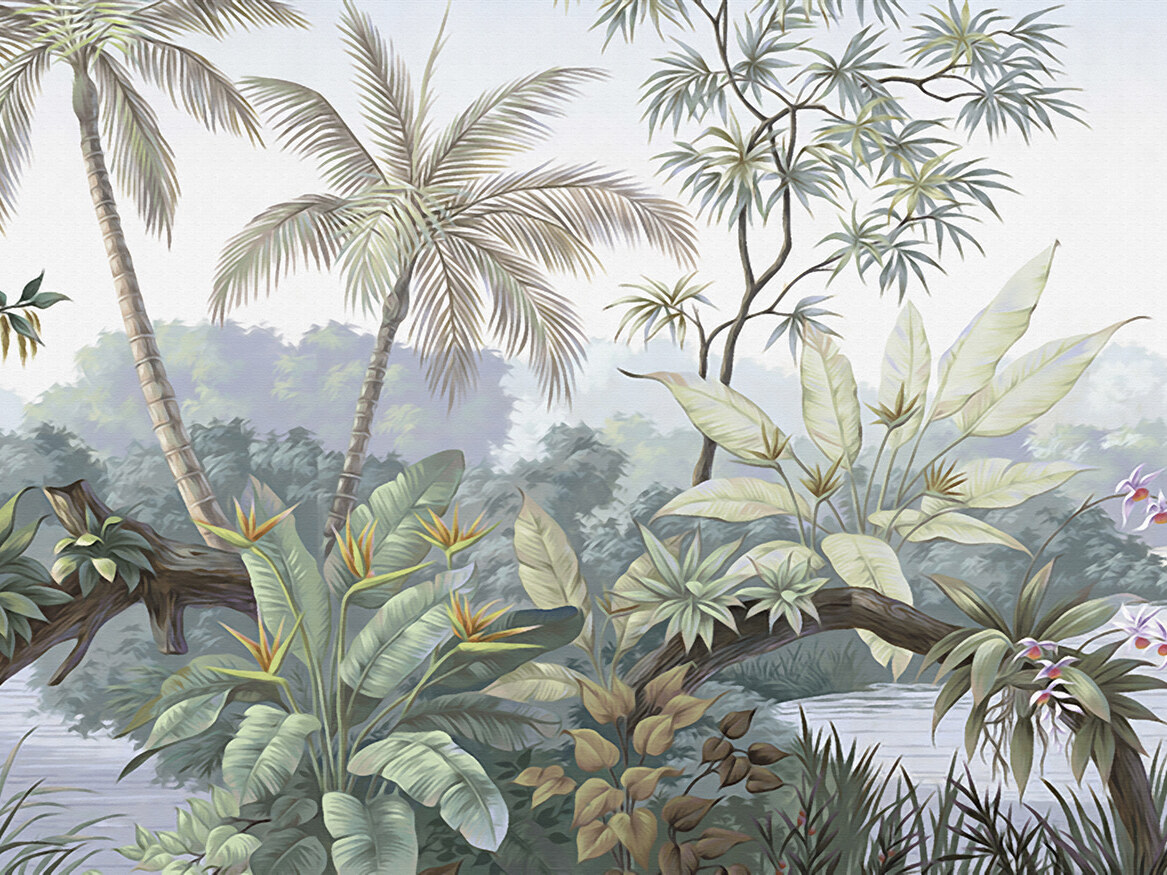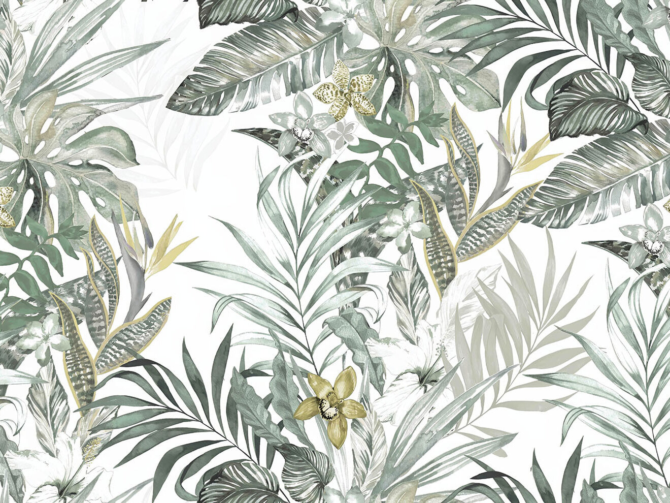 Papier peint Feuilles tropicales avec des fleurs délicates