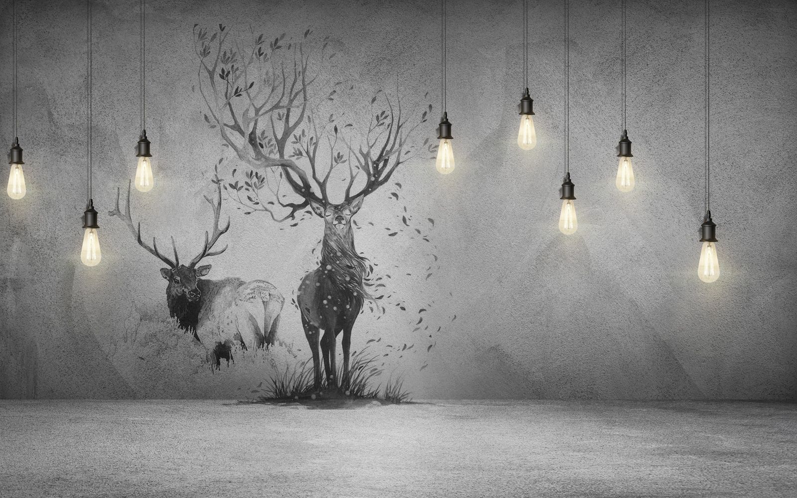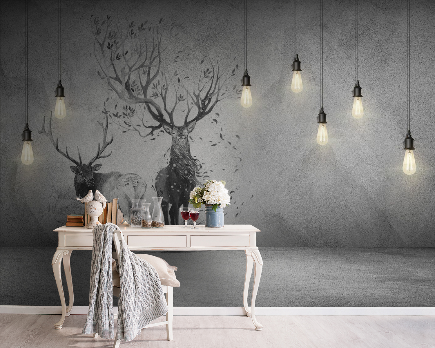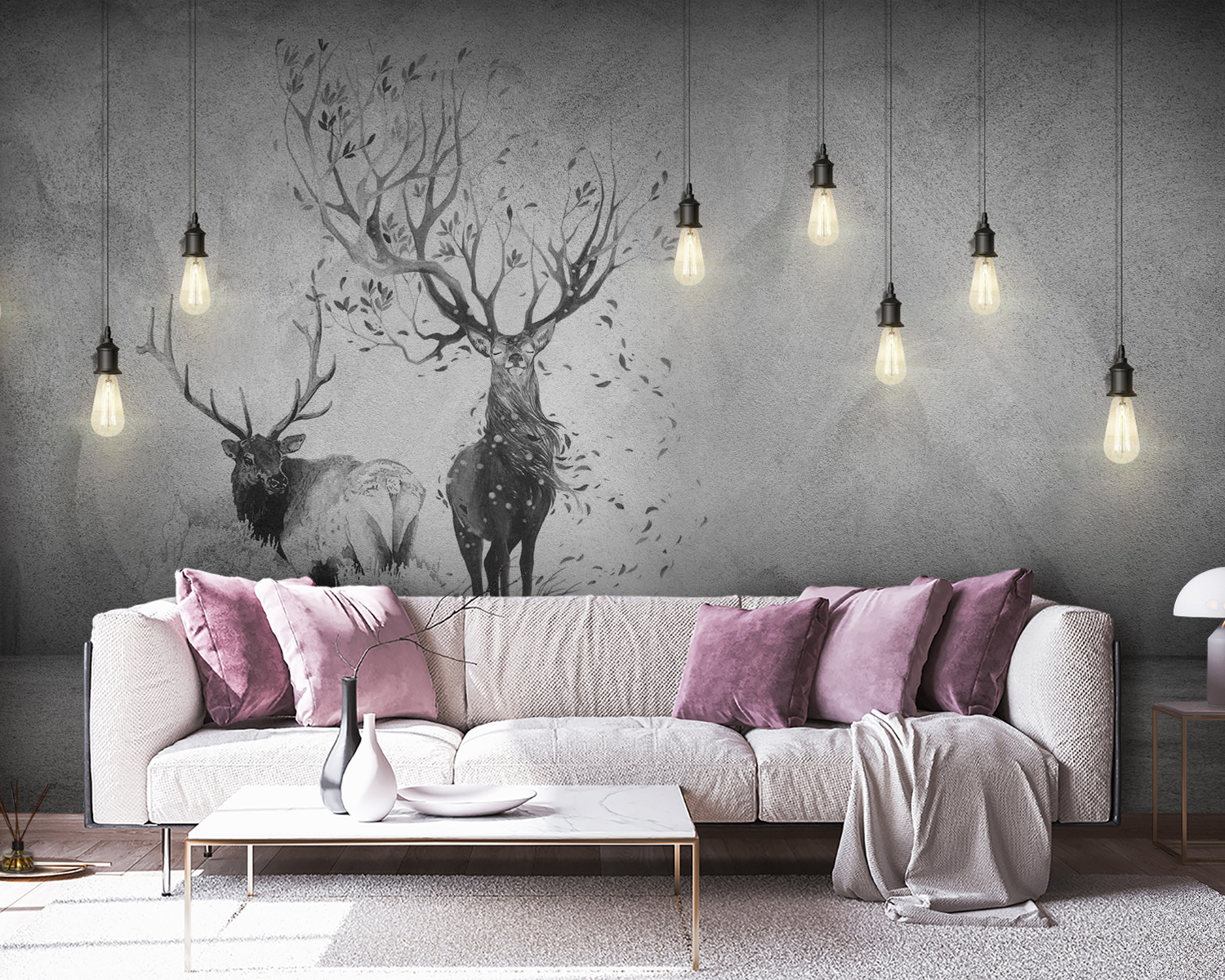 Papier peint Mur avec un dessin de deux cerfs et des arbres Papier peint Mur avec un dessin de deux cerfs et des arbres