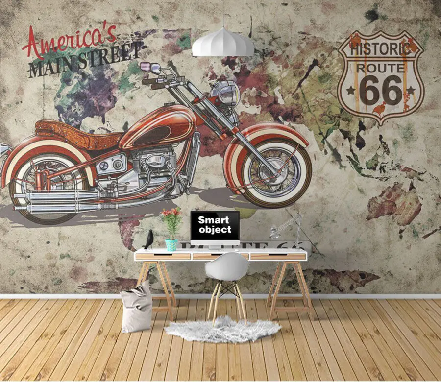 Rev up your space with this vibrant wall mural featuring a classic motorcycle cruising along the legendary Route 66. It’s not just a mural; it’s a road trip for your walls! The warm tones of the bike and the splashes of color in the background invite a sense of adventure. Imagine surprising a friend with this eye-catching decor—they might just want to hop on and hit the road! Perfect for a cozy den or a retro-themed room, it sparks joy and wanderlust. Let this mural be a daily reminder that life’s too short to stay in one place. Buckle up for style!