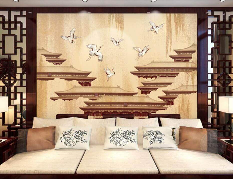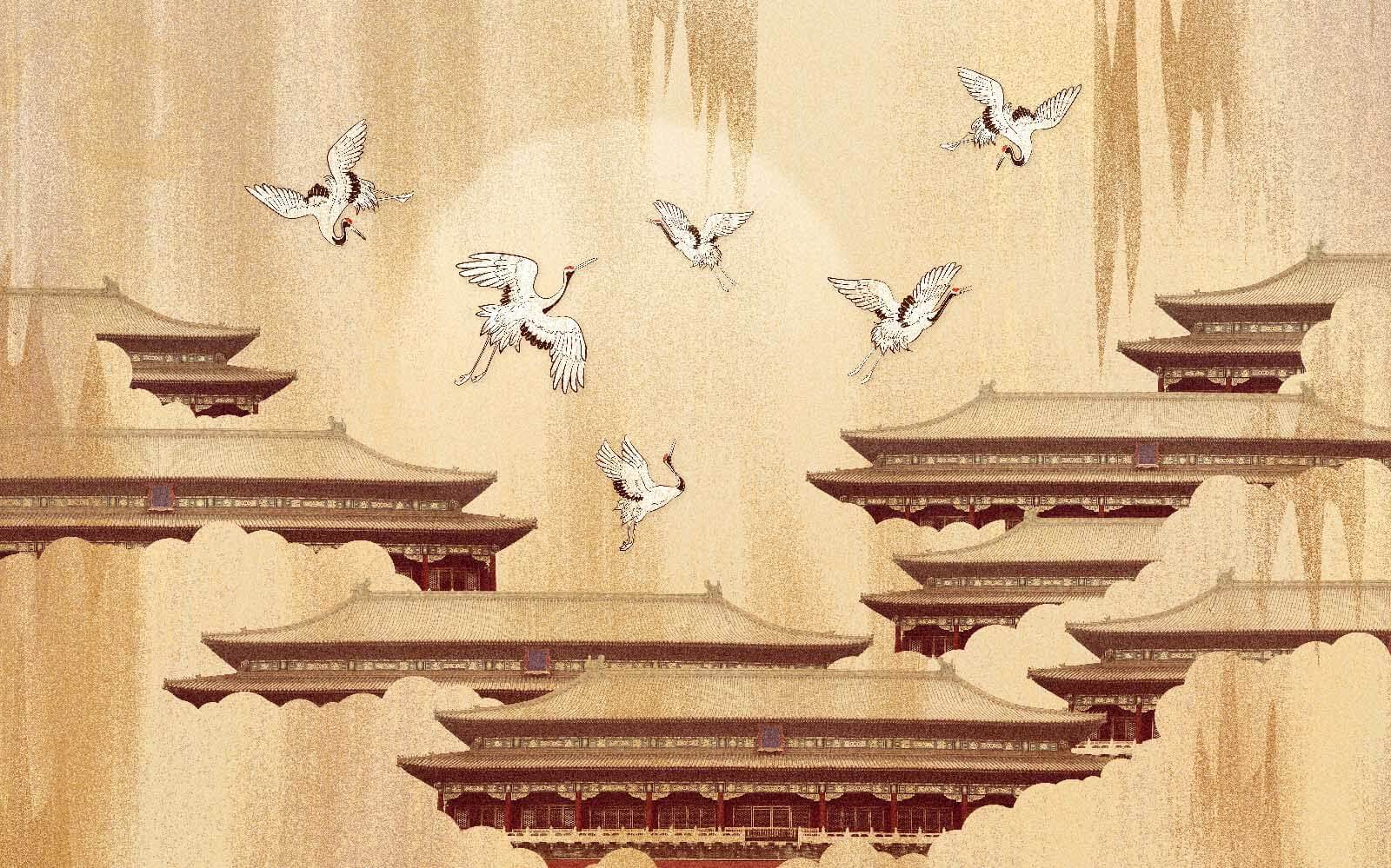 Imaginez que vous entrez dans une pièce ornée de cette superbe peinture murale représentant des grues s’élevant gracieusement dans le ciel. Chaque oiseau donne l’impression d’être pris dans un moment de liberté, planant au-dessus d’élégants toits qui murmurent des histoires de pays lointains. Cette peinture murale ne se contente pas de décorer le mur, elle transforme tout l’espace, invitant à la paix et à la sérénité.