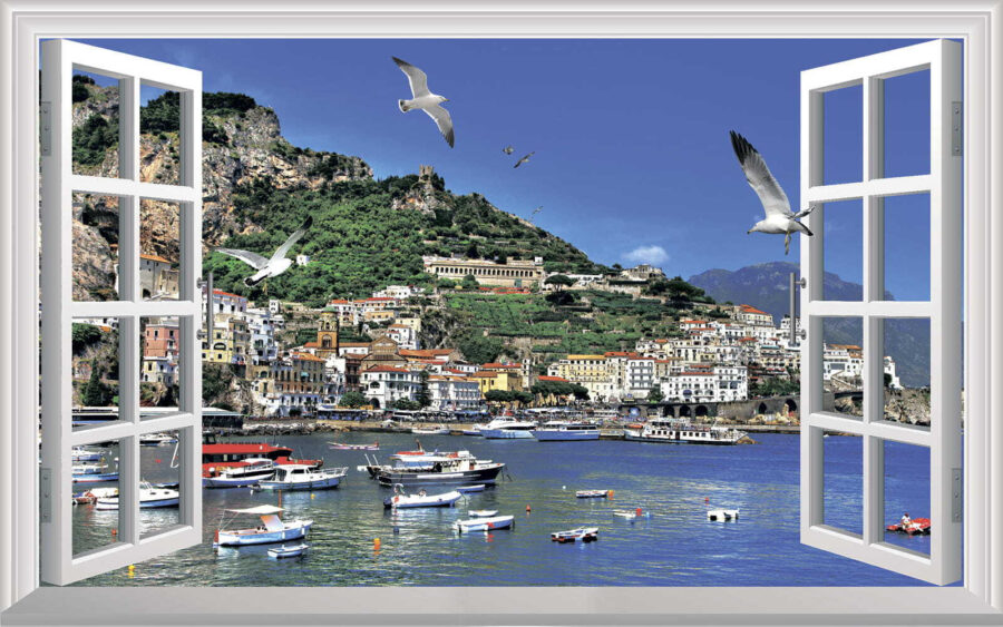 Transform your space with this stunning wall mural, “Window with a View of a City and Boats.” Imagine waking up to this vibrant scene every day—just like a vacation without packing a bag! The picturesque waterfront is framed like a postcard, offering a cozy escape right in your living room. Those gentle waves and colorful boats seem to call out, inviting daydreams of sun-soaked adventures and seaside brunches. It’s perfect for adding that refreshing touch, making any wall feel like it has a story to tell. Dive into this panoramic bliss and let your walls do the talking!
