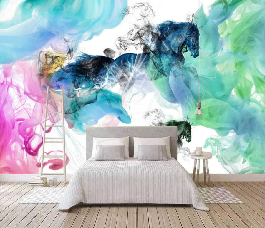 Transformez n’importe quel espace avec cette peinture murale captivante de chevaux dansant à travers des nuages de fumée colorés. C’est comme un rêve éveillé où l’art et l’imagination s’entrechoquent. Les teintes vibrantes – pensez aux bleus qui se mêlent aux roses enjoués – apportent énergie et charme, ce qui en fait un sujet de conversation à coup sûr. Imaginez-la dans un coin lecture confortable ou sur un mur audacieux. Il pourrait bien inspirer une soirée dansante improvisée ou des soirées calmes avec un livre et une tasse de thé. À chaque coup d’œil, vous vous sentirez un peu plus vivant, comme une bouffée d’air frais dans votre maison. De plus, qui n’aime pas voir un cheval galoper dans un nuage coloré ? Ça, c’est de l’ambiance !