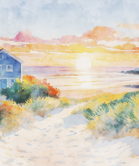 Papier peint Aquarelle d'un coucher de soleil sur une étendue d'eau