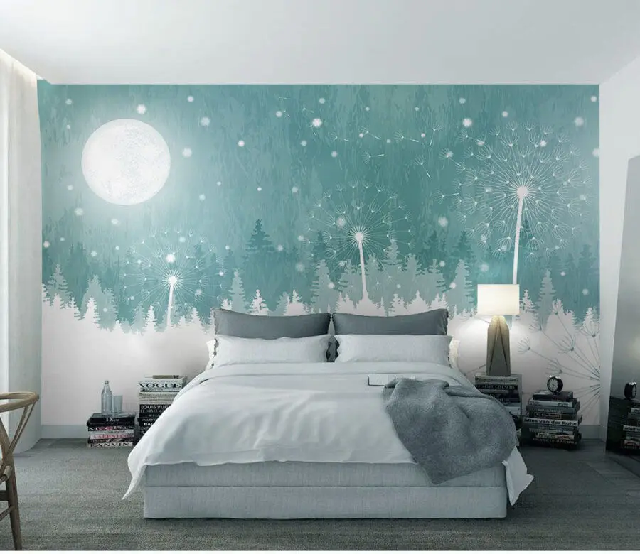 Transform a simple room into a dreamy escape with the “Moon over a Snowy Forest” mural. Picture this: you walk in, and BAM—the serene beauty of a moonlit night spills across your walls. Those gentle dandelions dancing in the breeze? Pure magic. It’s like bringing the tranquility of nature right indoors. Perfect for cozy nights, or even just as a backdrop for those Instagram moments. Plus, who wouldn’t want a slice of winter wonderland anytime of the year? It’s a conversation starter, a dreamweaver, and a little piece of calm in the chaos of life. This mural is sure to add a whimsical touch that makes everyone stop and sigh.