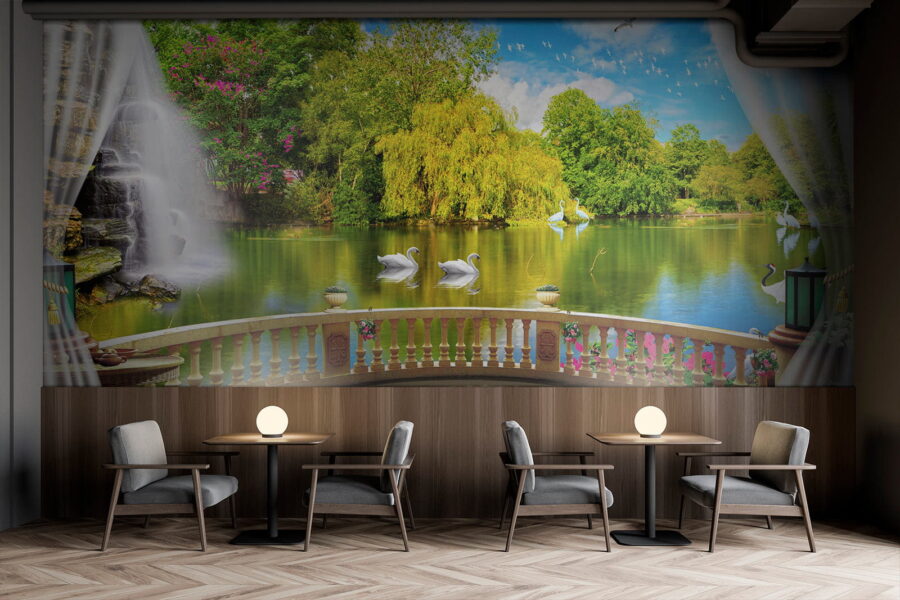 Transformez n’importe quelle pièce en une oasis de tranquillité grâce à cette charmante fresque murale intitulée « Vue d’un étang avec des oiseaux et des arbres ». Imaginez-vous en train de siroter votre café du matin, et soudain, le chaos du monde s’estompe : il n’y a plus que vous, les eaux sereines et les cygnes gracieux qui glissent sur l’eau. Les verts vibrants et les bleus vifs apportent la nature directement sur vos murs, donnant à chaque jour l’impression d’une promenade tranquille au bord de l’eau. Parfaite pour un coin confortable ou un salon animé, cette fresque murale n’est pas seulement une décoration, c’est un petit coin de paix qui vous murmure : « Respirez, vous le méritez ». N’est-il pas temps d’embrasser ces vibrations apaisantes ?