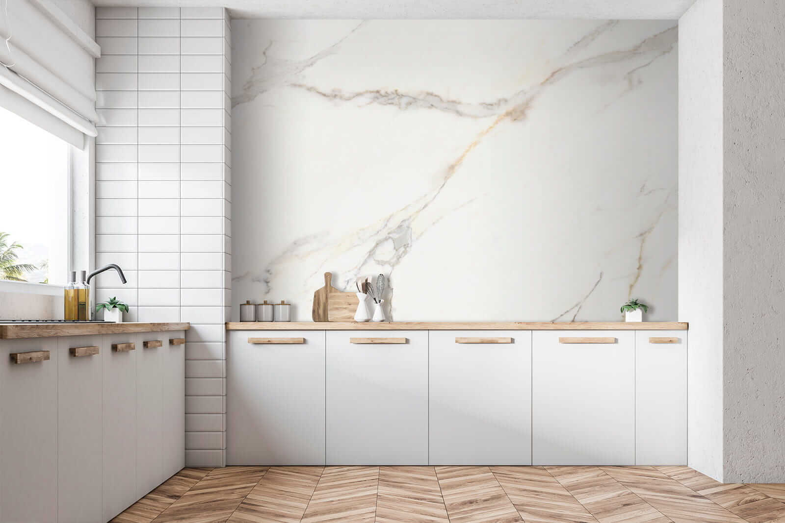 Papier peint Marbre blanc avec veines noires (UGS: u18977)