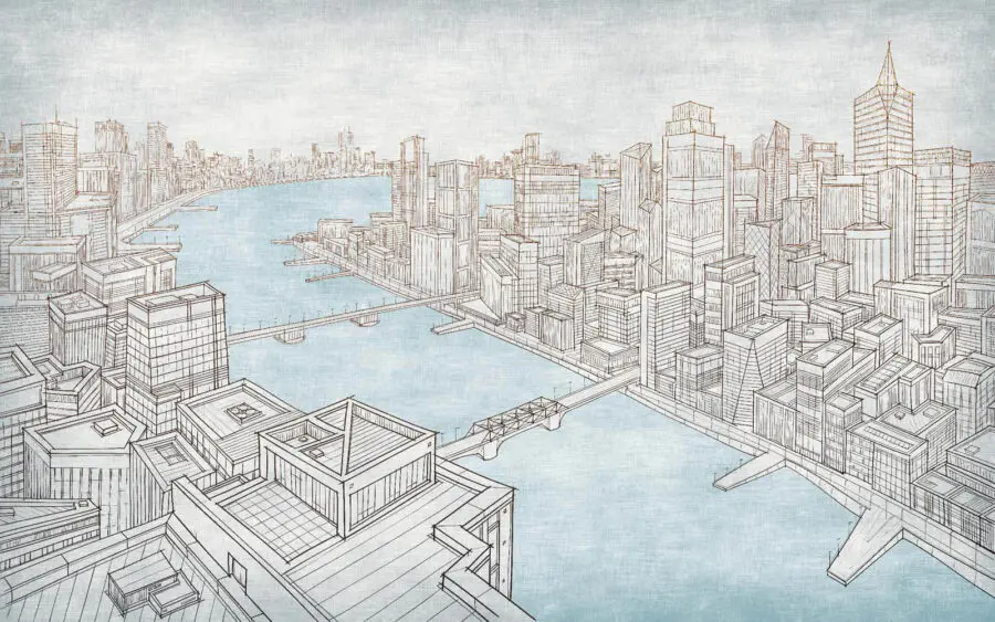 Transform any space with this stunning wall mural featuring a sleek cityscape. Imagine standing by a window overlooking a bustling metropolis—skyscrapers reaching for the clouds and a river winding through it all. This mural draws you in, making your room feel like it’s part of the city’s pulse.