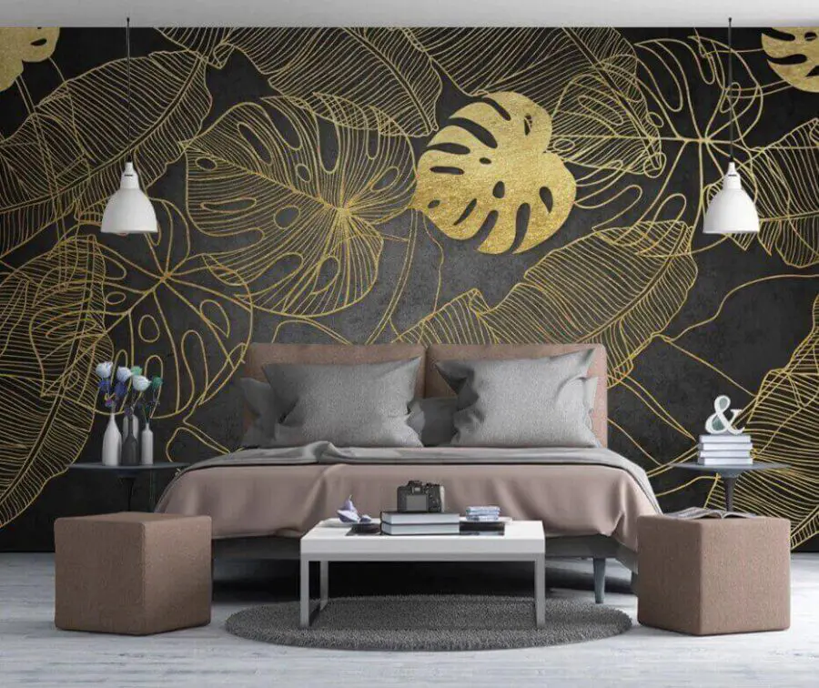Transformez votre espace avec cette superbe peinture murale qui fait entrer la nature dans vos murs. Les motifs de feuilles sur fond sombre créent une ambiance fraîche et sereine qui donne l’impression de pénétrer dans une jungle paisible. Imaginez-vous en train de siroter votre café du matin, entouré par les formes et les lignes apaisantes d’un feuillage luxuriant. C’est l’endroit idéal pour engager la conversation ou simplement pour rêvasser. Qui aurait pu imaginer que quelques feuilles pouvaient faire tout cela ? Que ce soit dans un salon confortable ou dans un café branché, cette peinture murale donne à tout espace une impression de fraîcheur et de fantaisie, comme si la nature s’était installée à l’intérieur. Parfait pour les amateurs de déco unique !