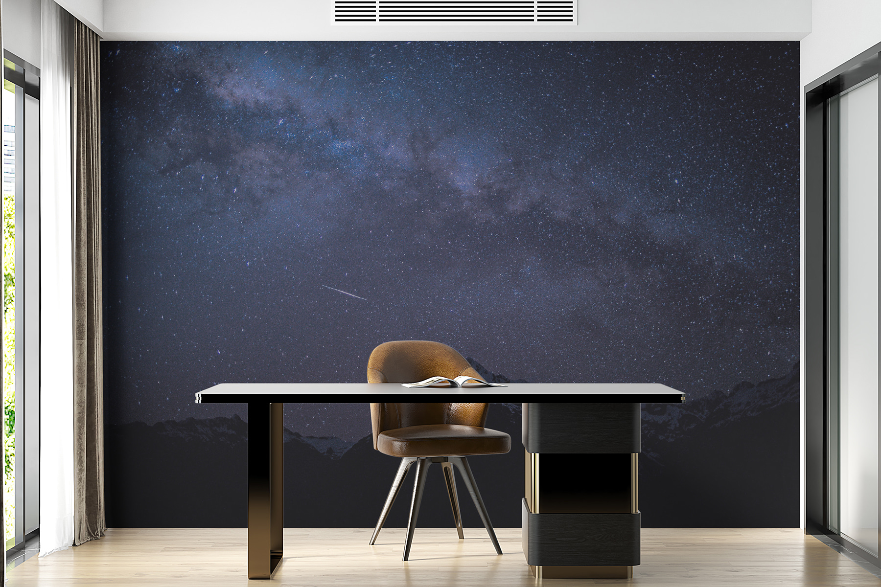 Imaginez que vous pénétrez dans un havre de paix où les montagnes déchiquetées rencontrent une pluie d’étoiles – oui, c’est la magie de cette peinture murale ! Elle transforme votre mur en un paysage nocturne à couper le souffle, invitant le calme des montagnes dans votre espace. Imaginez un fauteuil confortable, peut-être une boisson chaude à la main, tandis que les yeux dérivent vers les sommets qui semblent murmurer les secrets de l’univers. C’est comme si vous aviez votre propre petit coin d’évasion, idéal pour rêvasser ou pour entamer des discussions nocturnes. De plus, qui ne voudrait pas impressionner ses invités avec une vue qui dit : “Hé, je suis au cœur des montagnes, au moins sur le plan de la décoration ! Il s’agit de créer une atmosphère détendue. Parfait pour tous les coins – chambres à coucher, salons ou même espace de travail créatif.